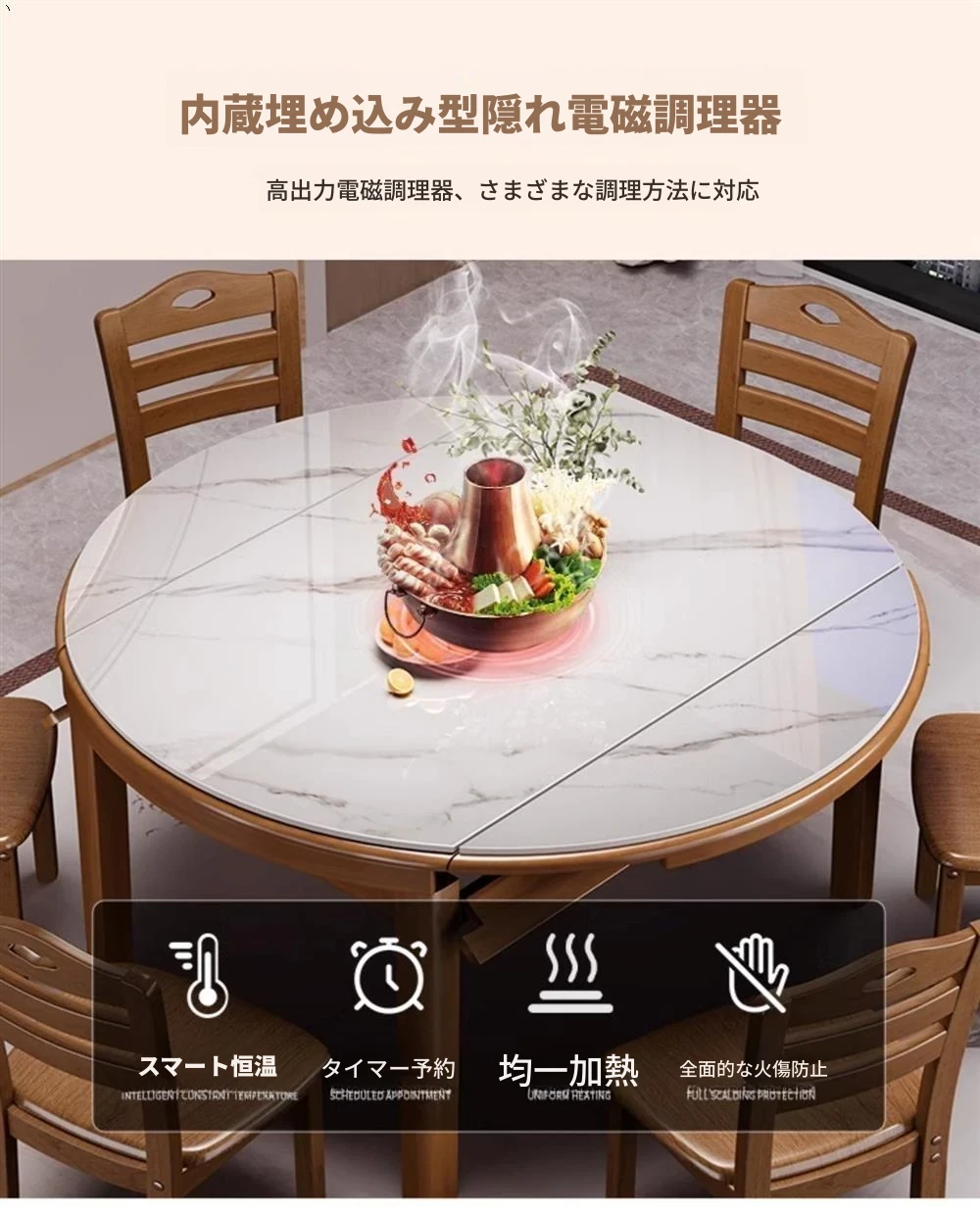 【アップグレード四軌道】一卓八椅+岩板回転盤+電磁炉