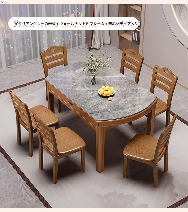【アップグレード四軌道】一卓六椅+岩板回転盤 ?店長おすすめ