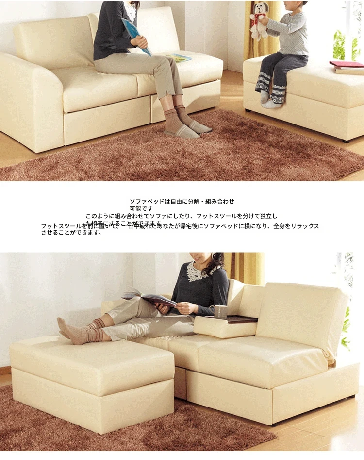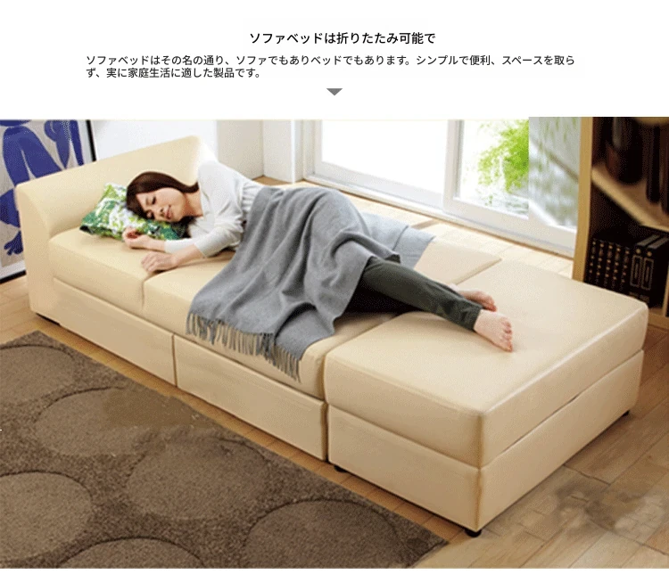 折りたたみ式多機能ソファベッド|経済的な合皮製|和風ミニマルデザイン|小さなリビングにぴったりなコンパクトソファセット!