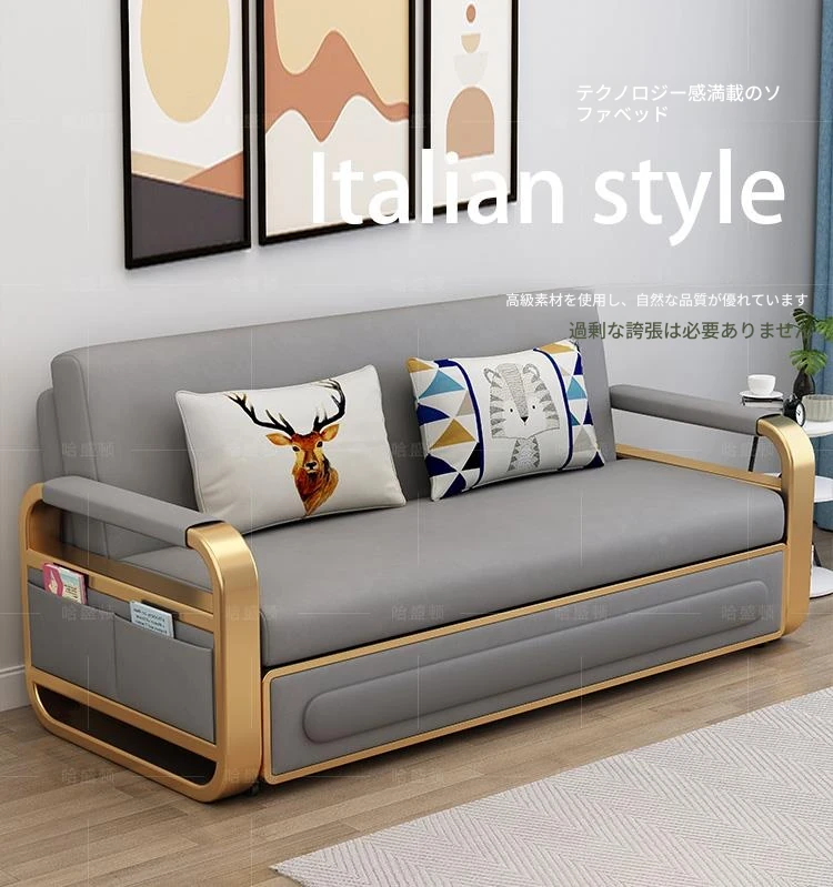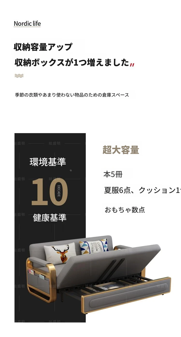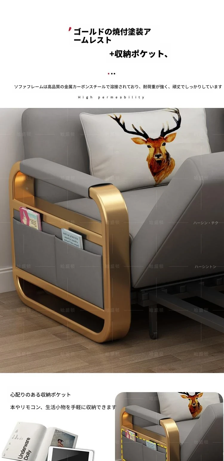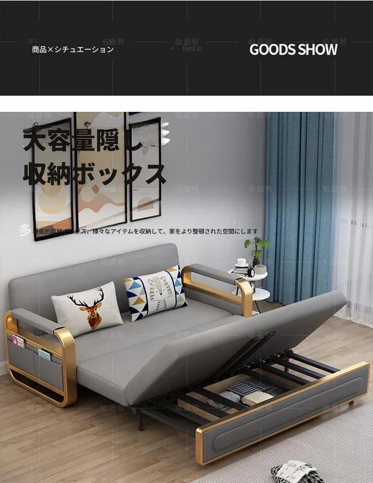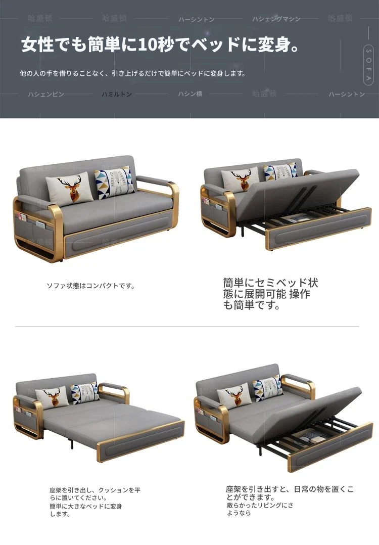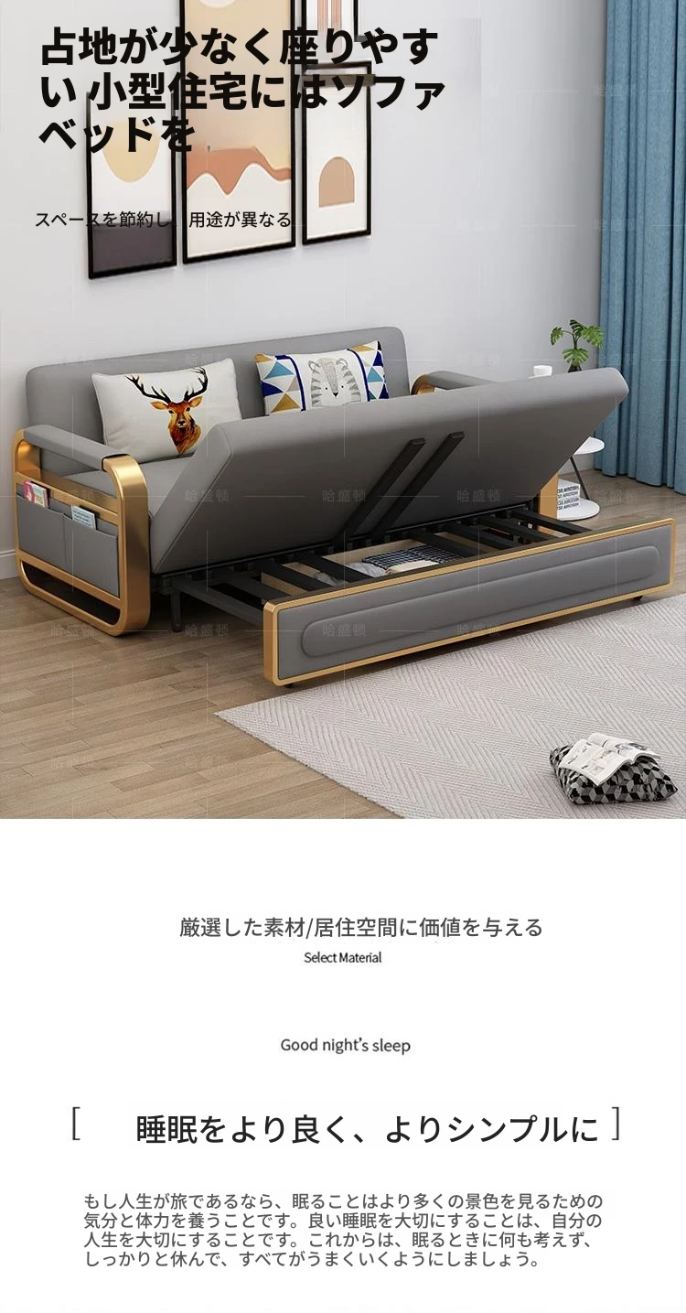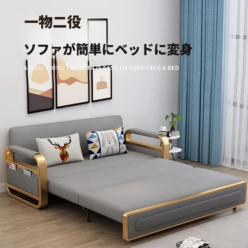 省スペース!簡単に変形するソファベッド - 多機能収納付き、スライド式で小さなリビングにも最適なダブル&シングル対応、折りたたみ可能!