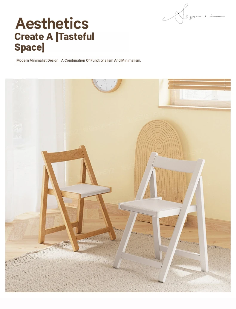Nordic Cream Solid Wood Dining Chair - Modern Minimalist Space-Saving Backrest Chair for Home Use, Perfect for Relaxation and Style