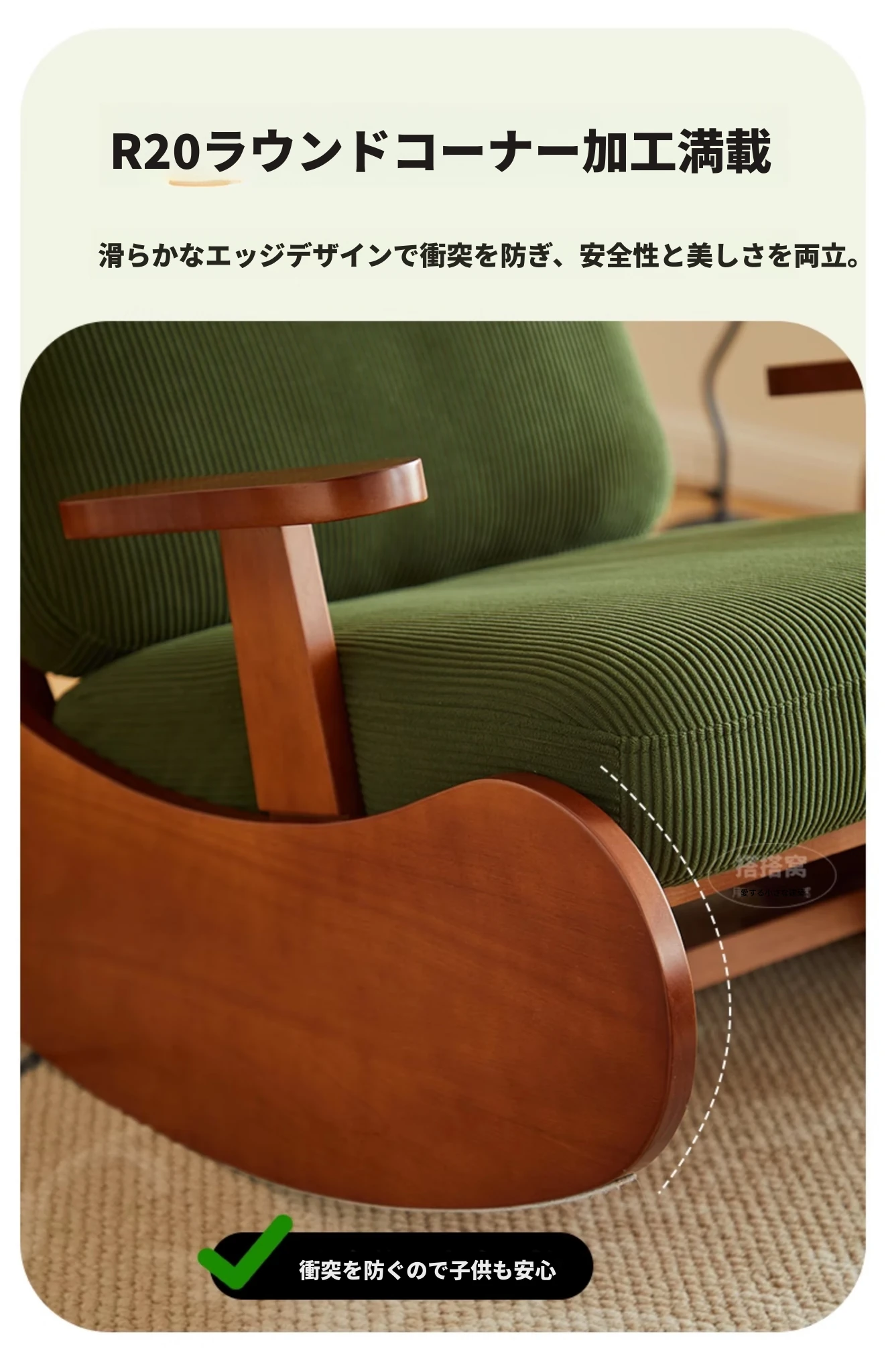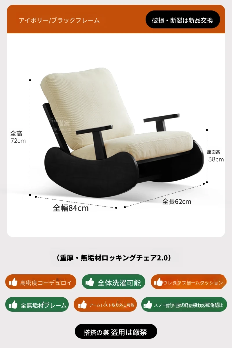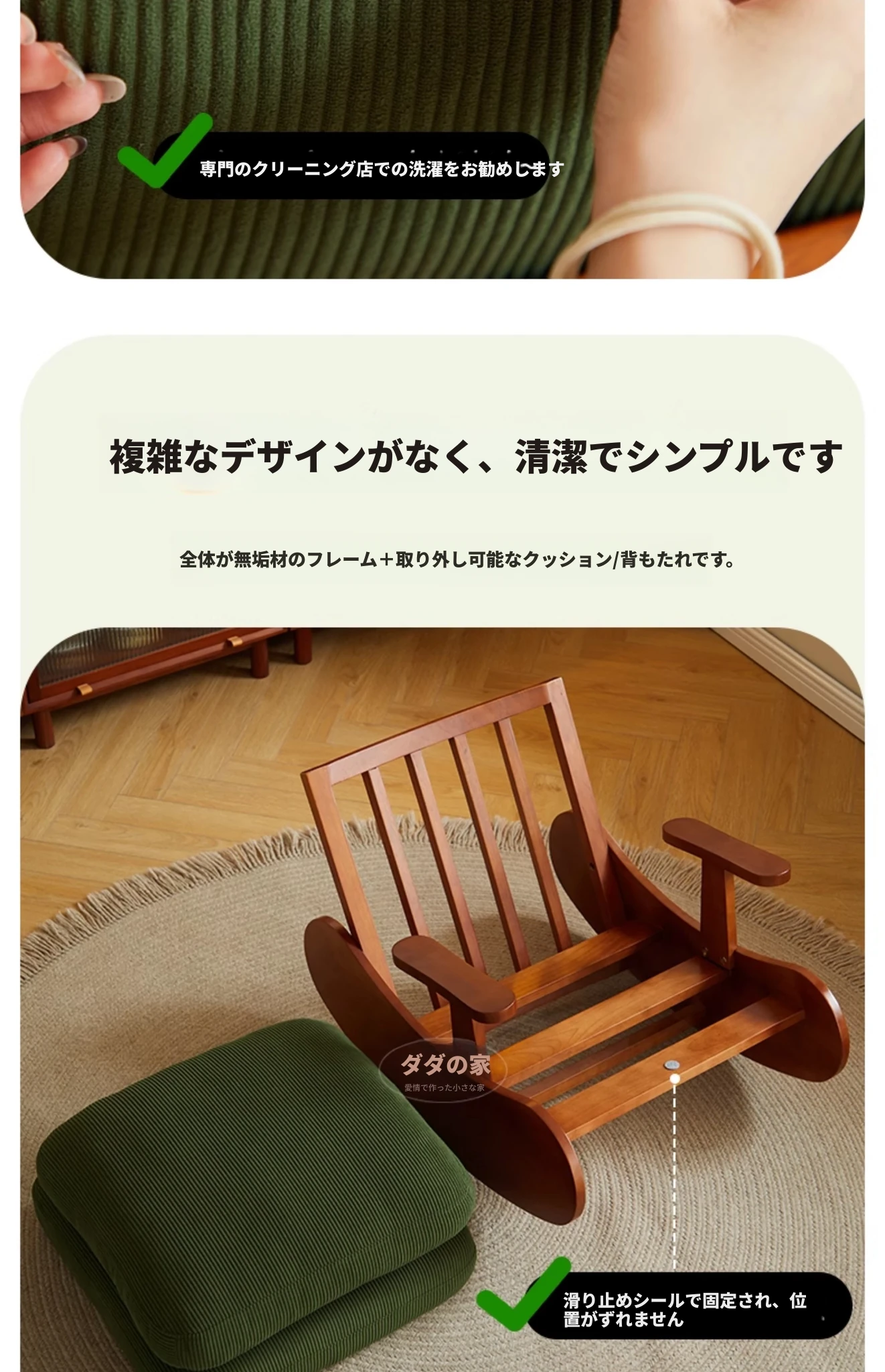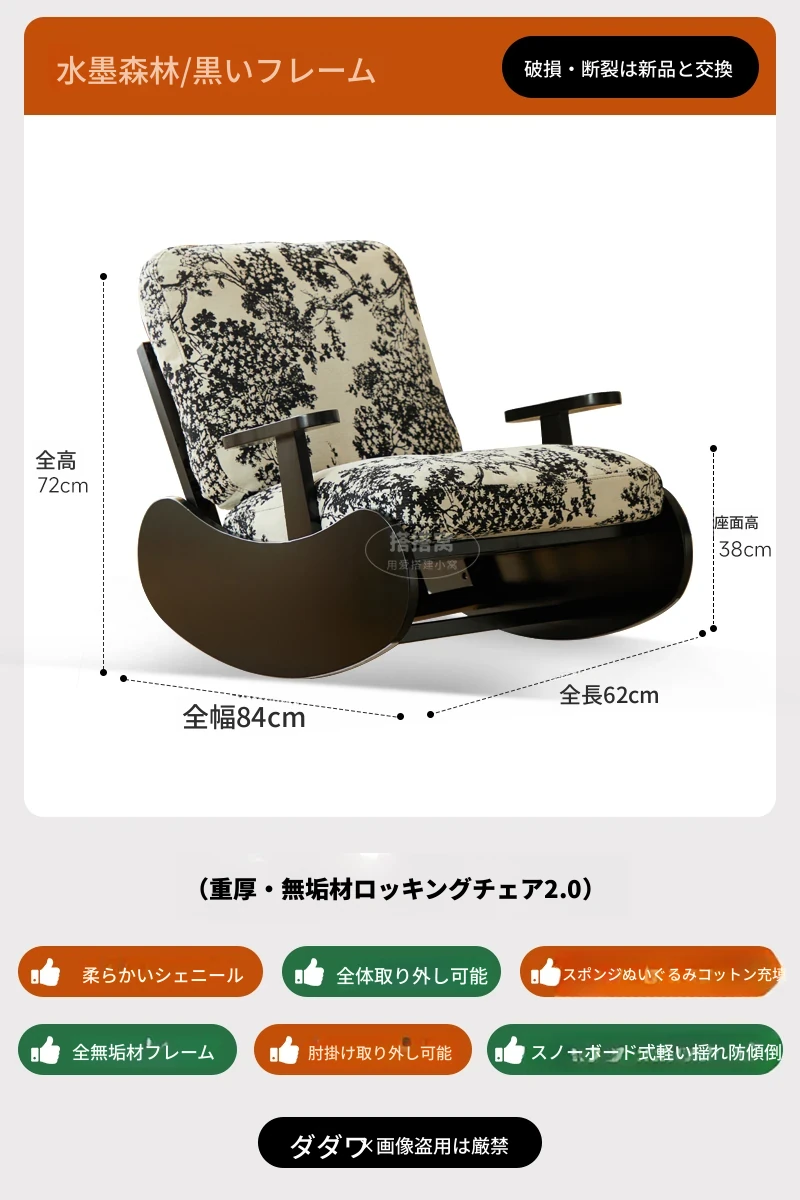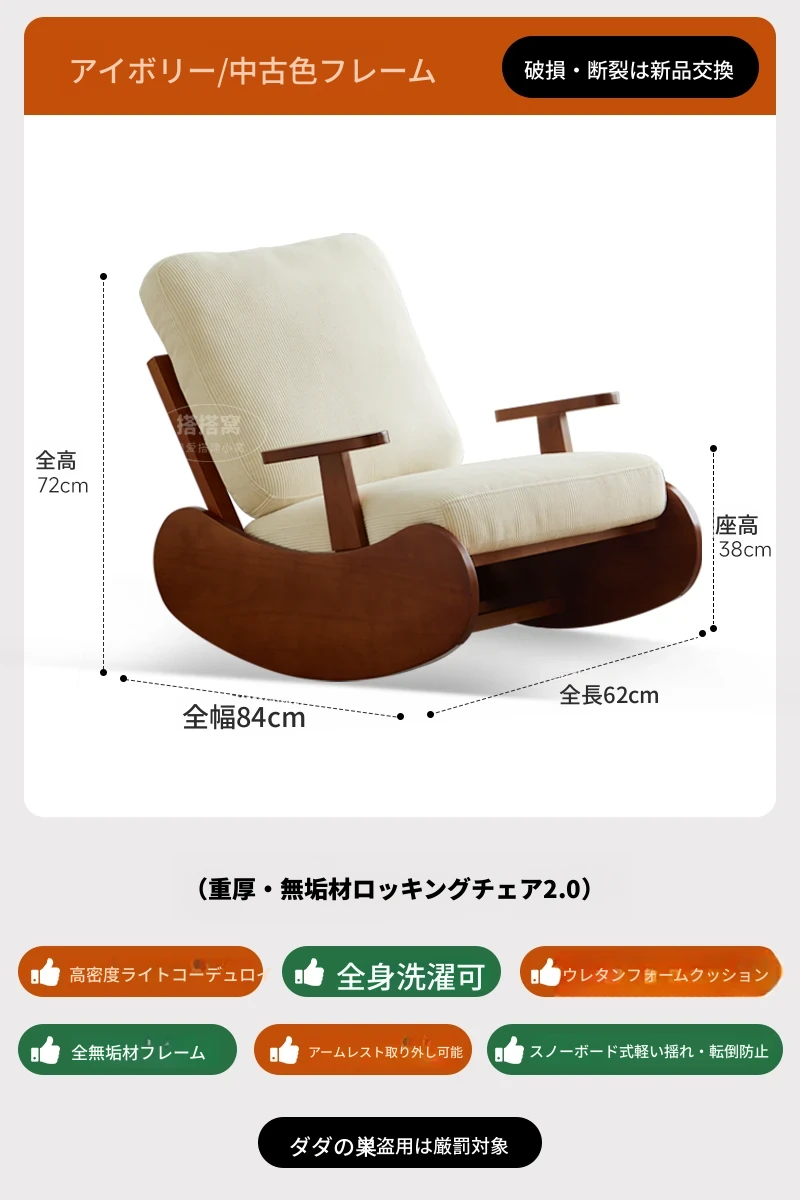 レトロな無垢材のリラックスソファ|家庭用・リビング・バルコニー・寝室に最適|寝転がれる・横になれる・おしゃれな洗える一人用ロッキングチェア|快適な休息のひとときをお届けします!