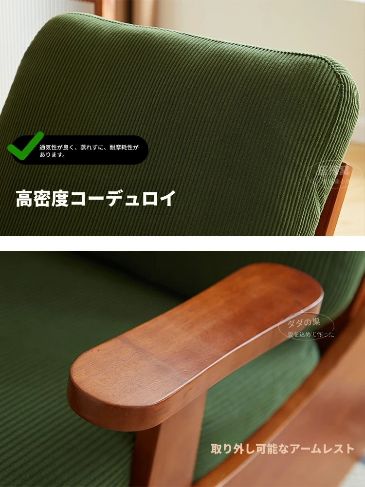 レトログリーン+フットレスト-コーデュロイ【黒い木枠】