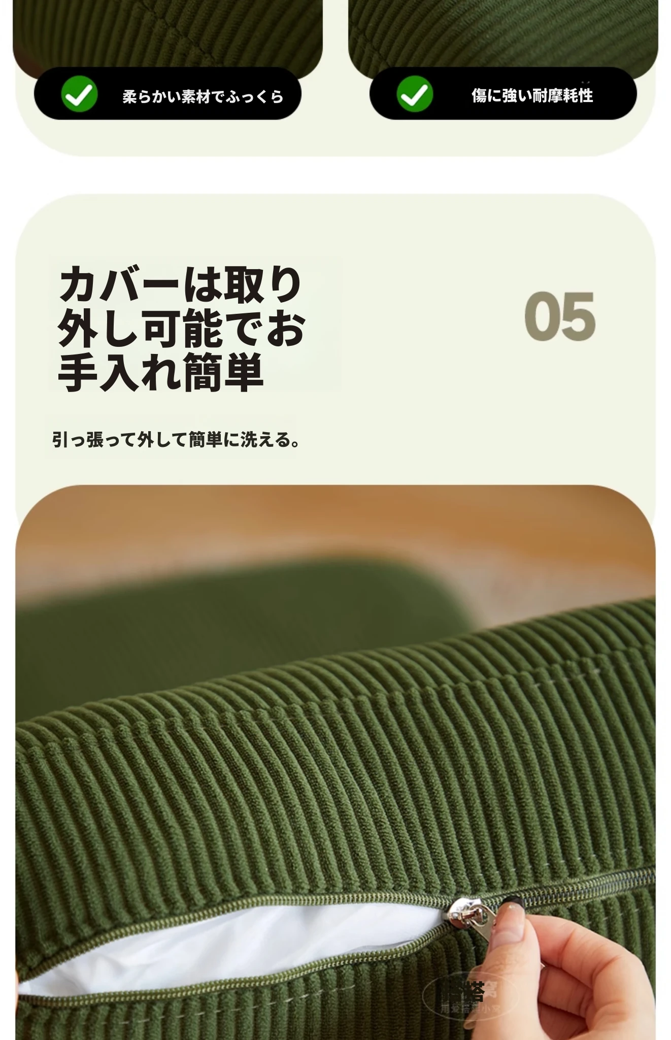 アイボリー+フットレスト-コーデュロイ【黒い木枠】