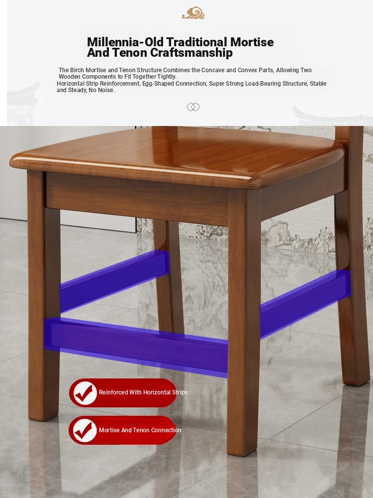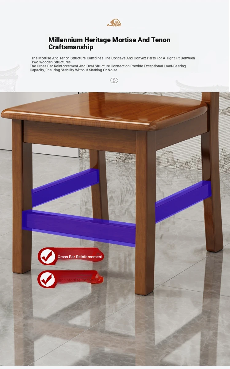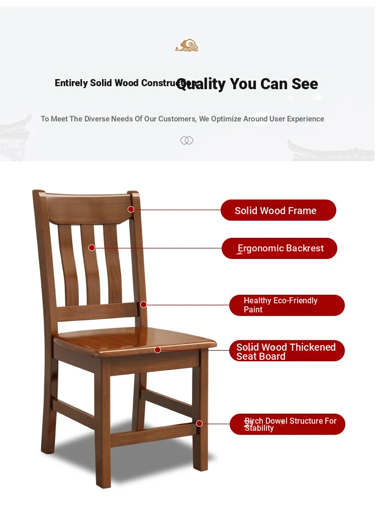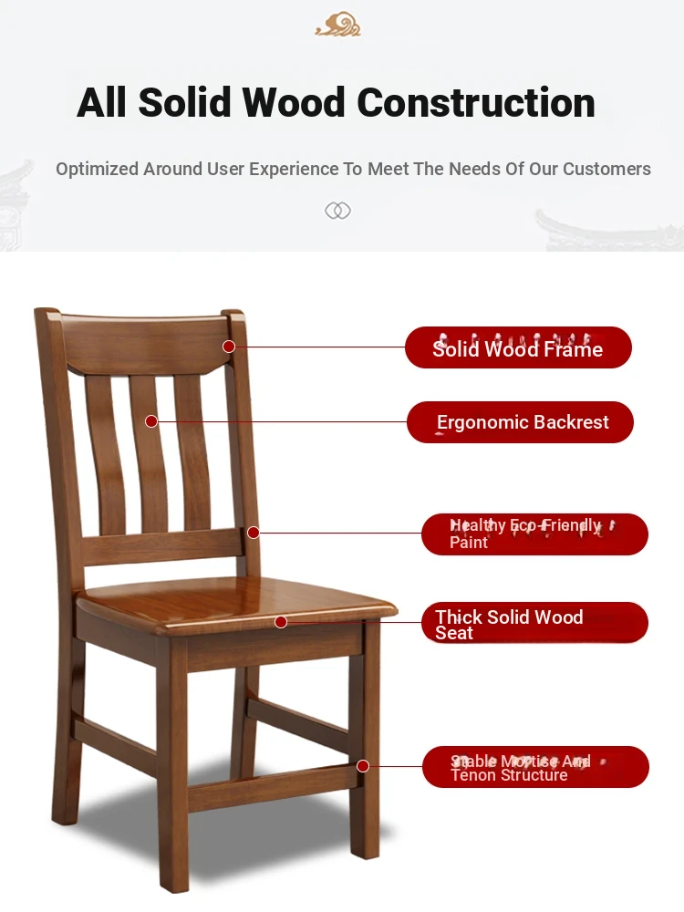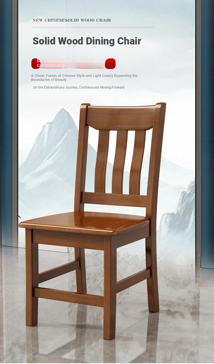 Solid Wood Dining Chair - Chinese Style, Backrest, No Assembly Required, Mortise and Tenon Structure, Modern Minimalist Design for Home Dining Table