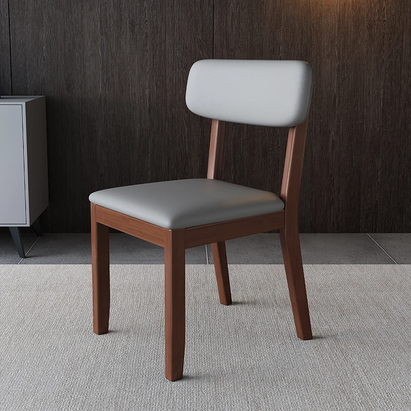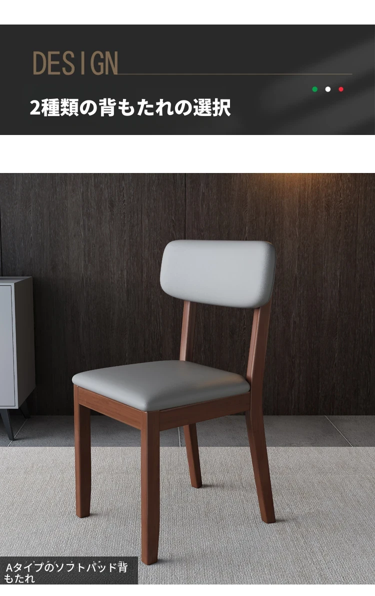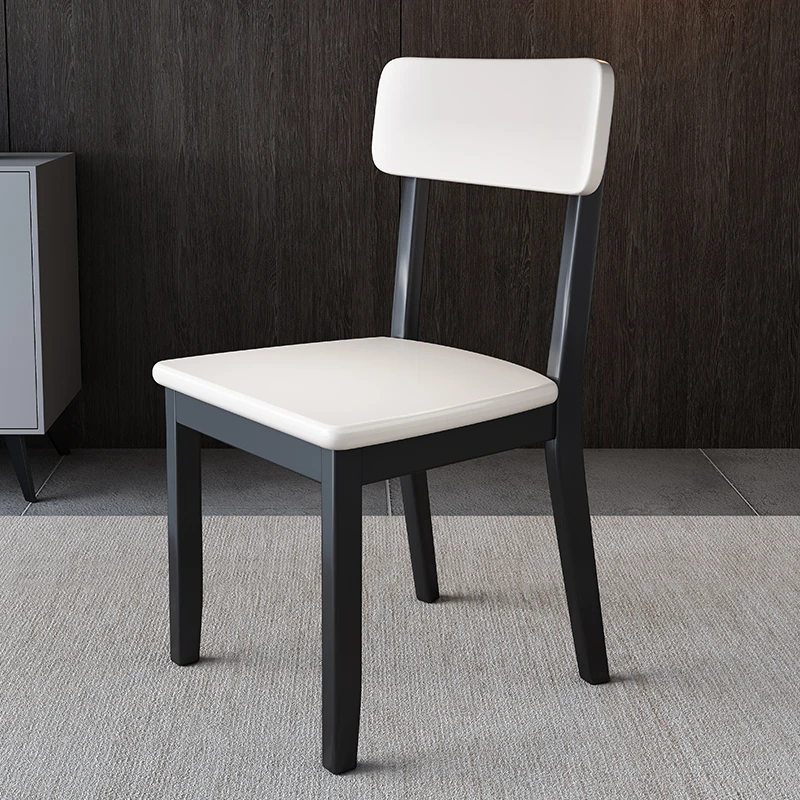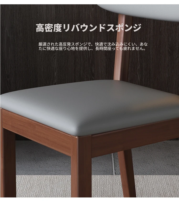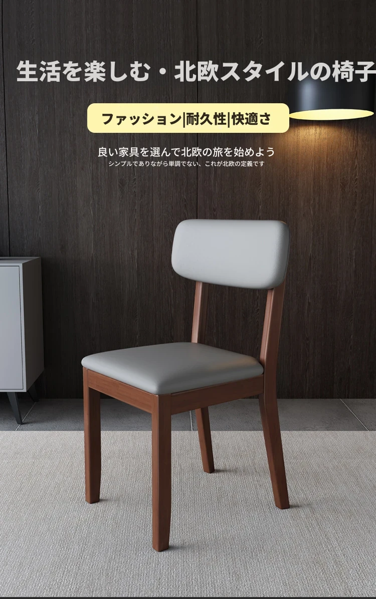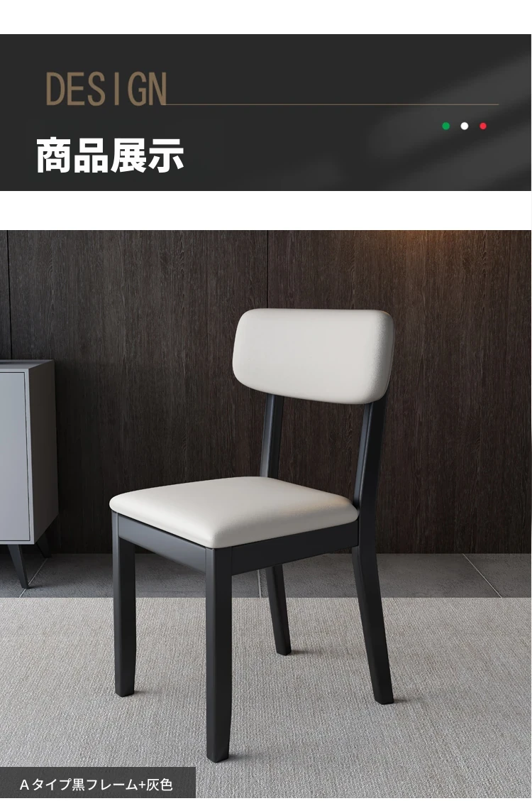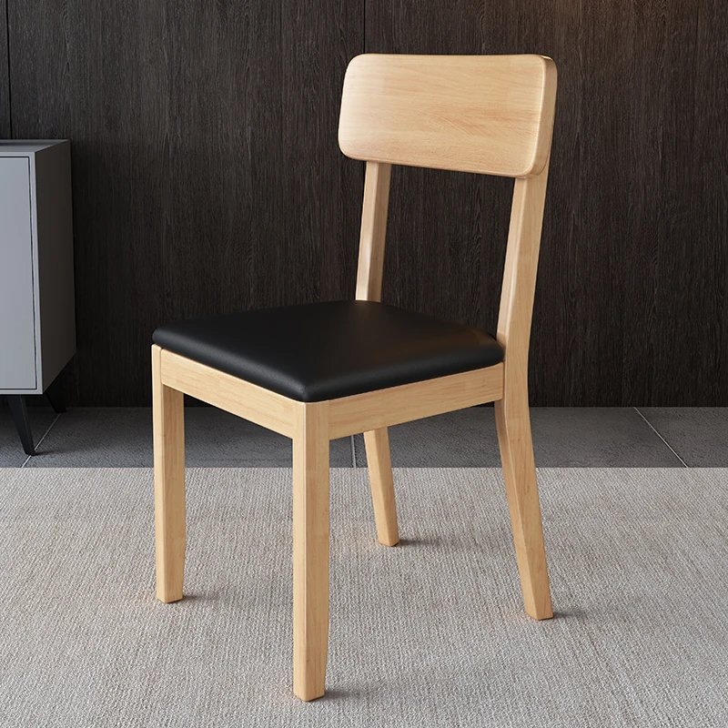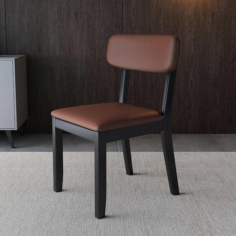 全木製の軽奢華ダイニングチェア - ブラックレザーの柔らかい背もたれ付き、家庭用や書斎に最適なスタイリッシュな椅子!快適さとデザインを兼ね備えた一品です。