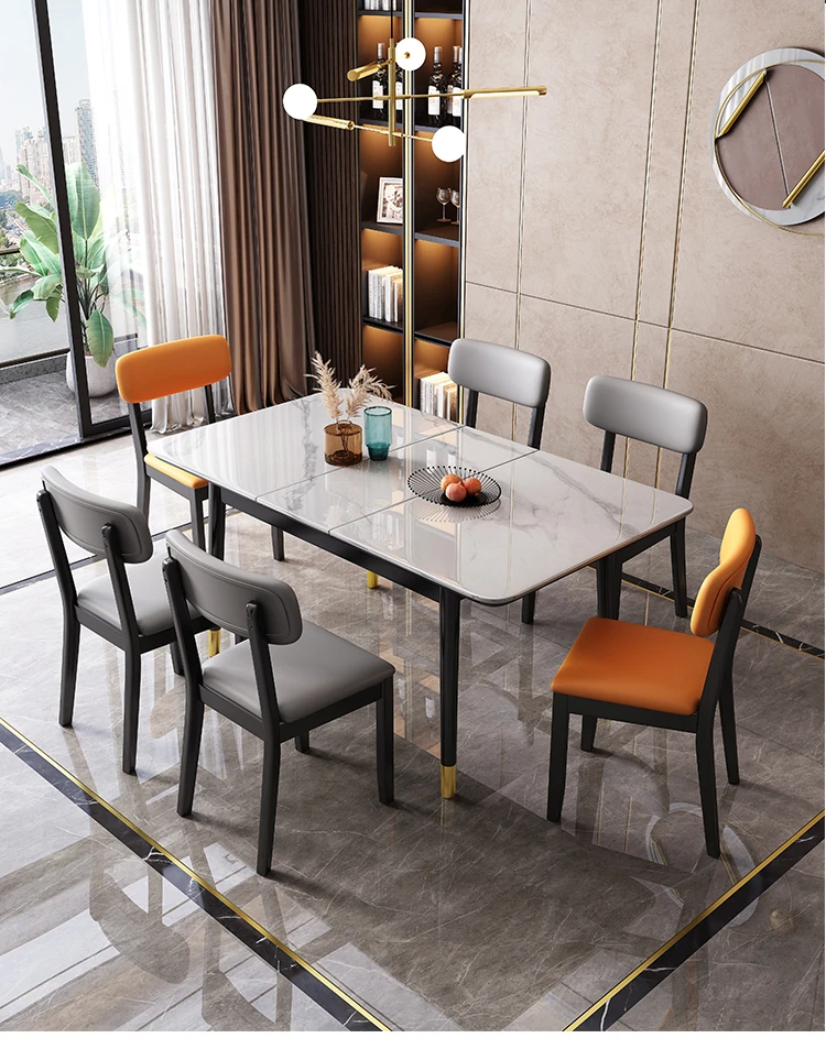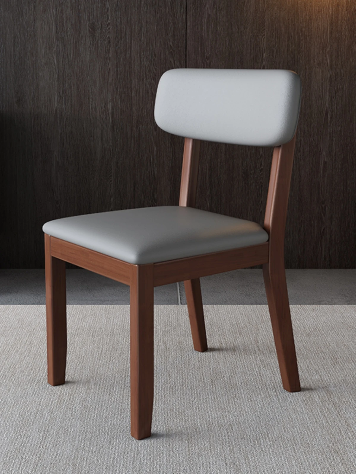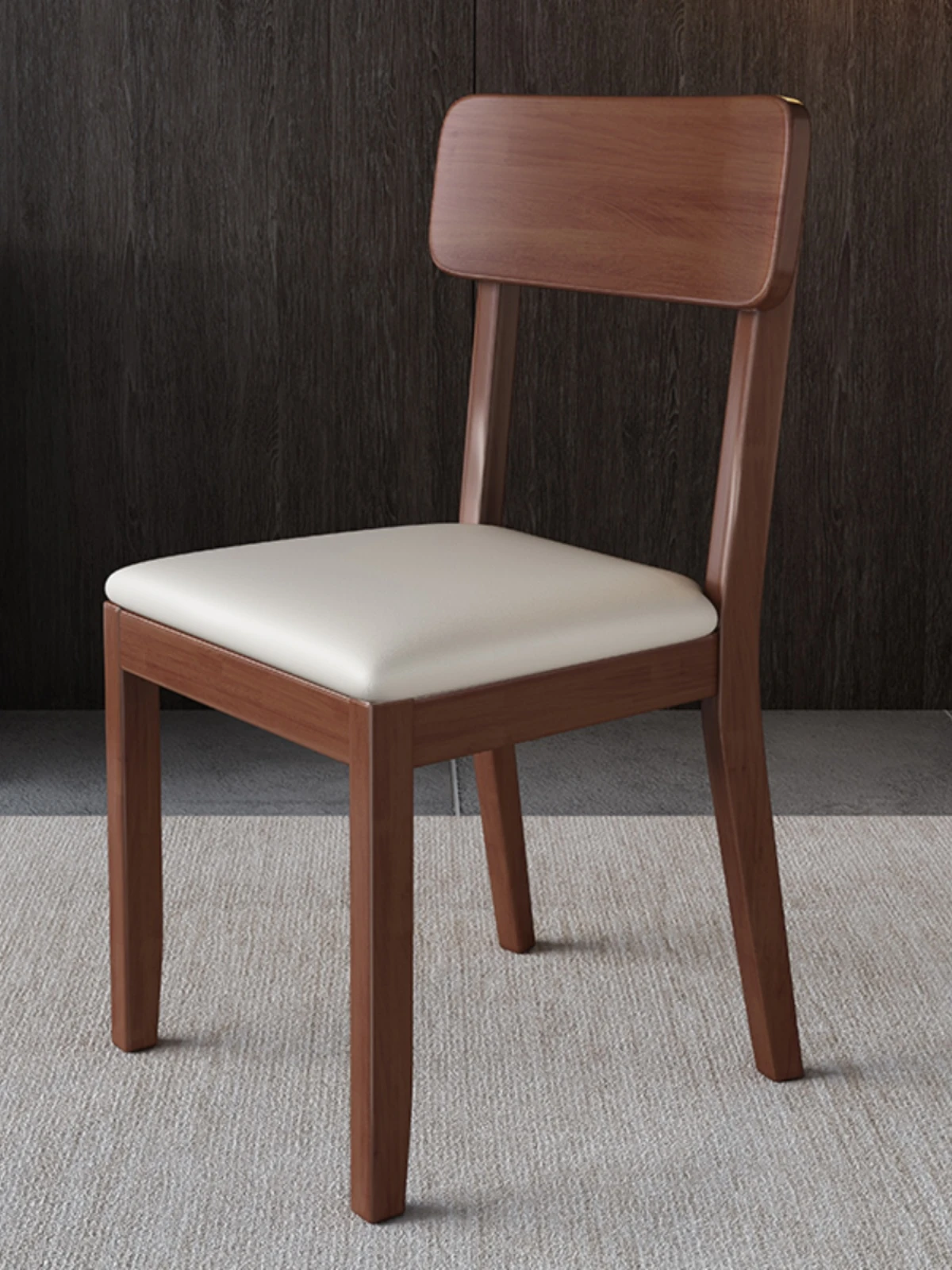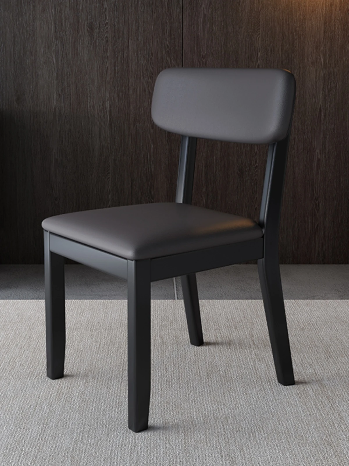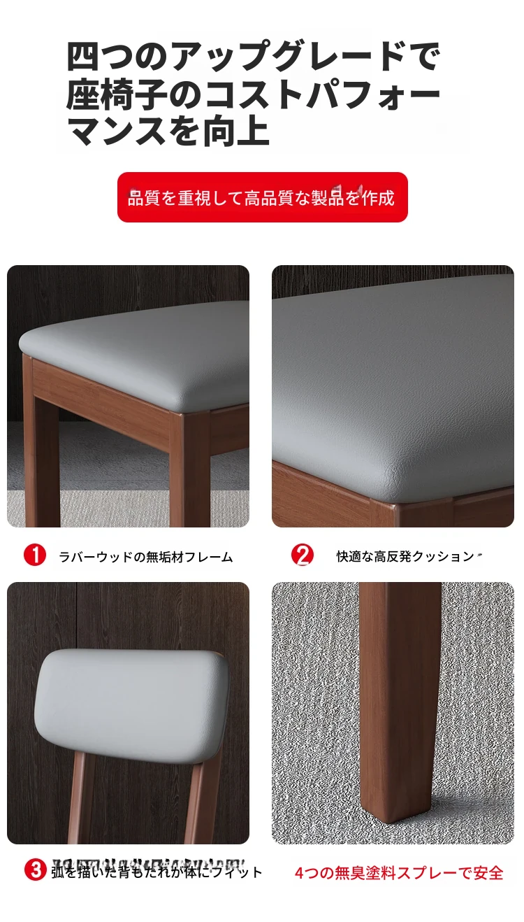 全木製の軽奢華ダイニングチェア - ブラックレザーの柔らかい背もたれ付き、家庭用や書斎に最適なスタイリッシュな椅子!快適さとデザインを兼ね備えた一品です。