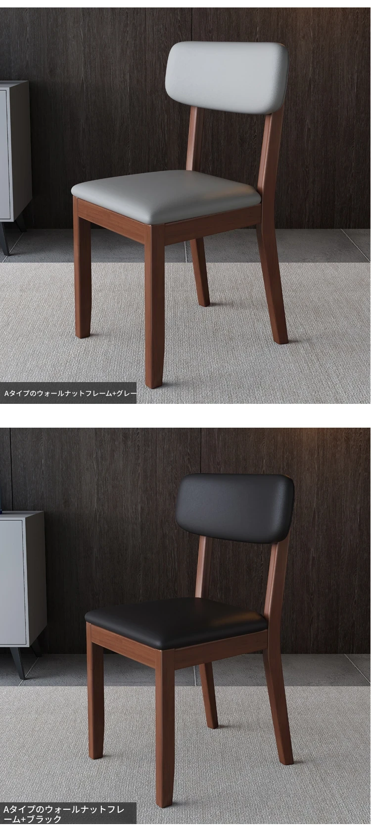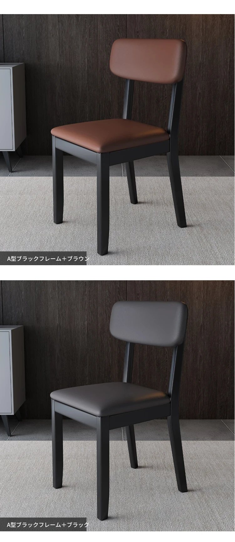 ナチュラルウッドの黒い皮(無垢材の背もたれ)