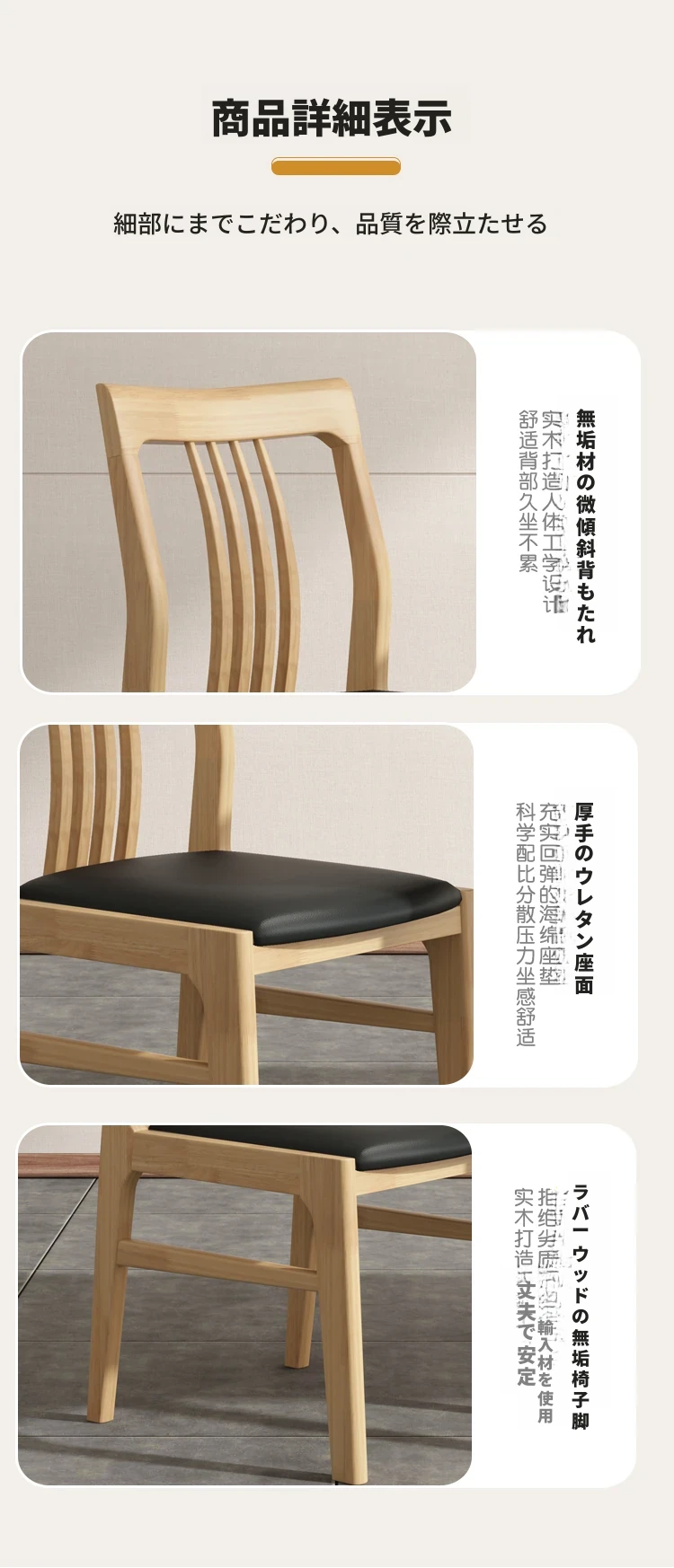 ナチュラル色全実木整装椅子