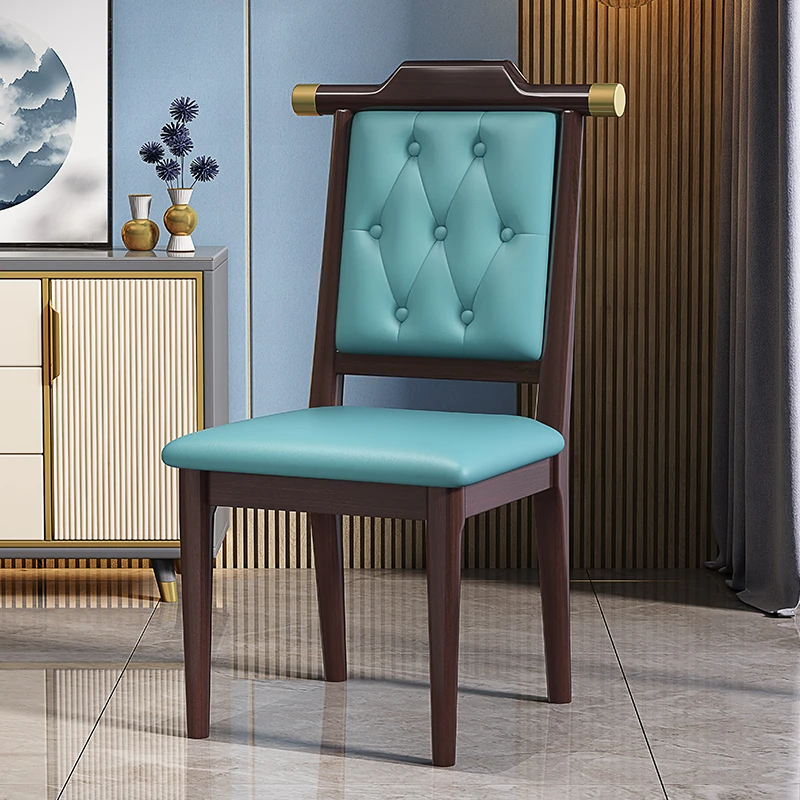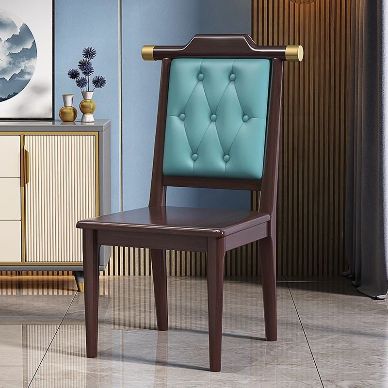 紫檀色のブルーレザーソフトシート新中式ダイニングチェア