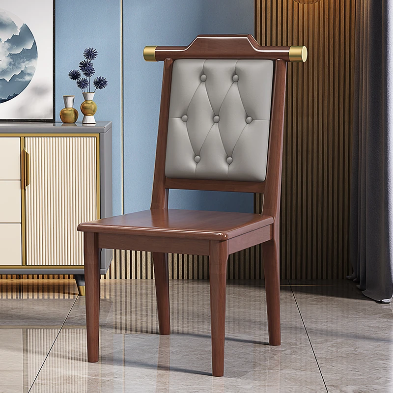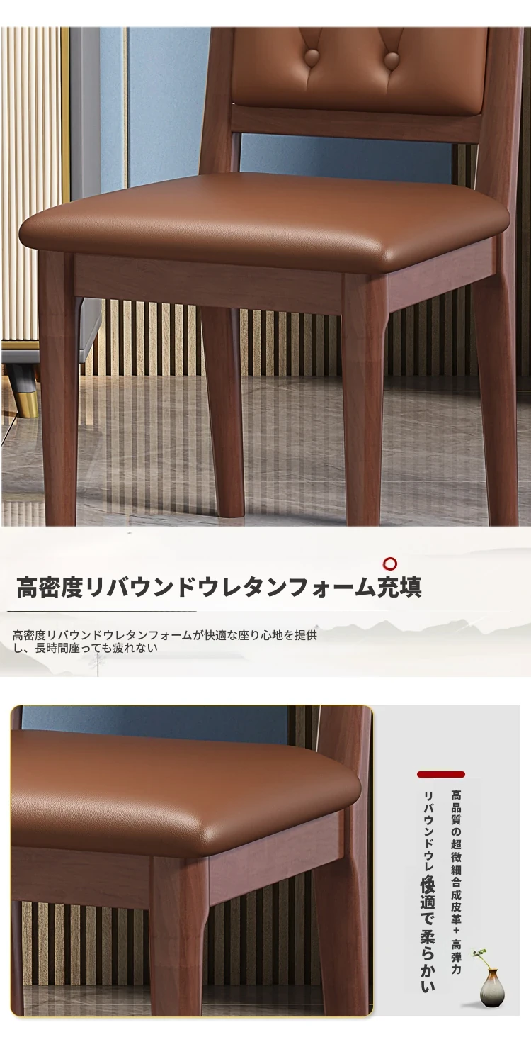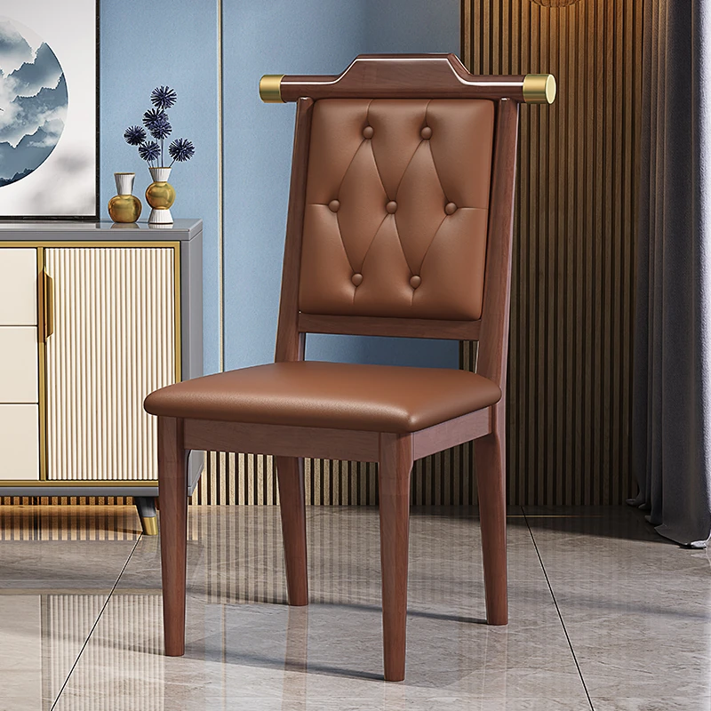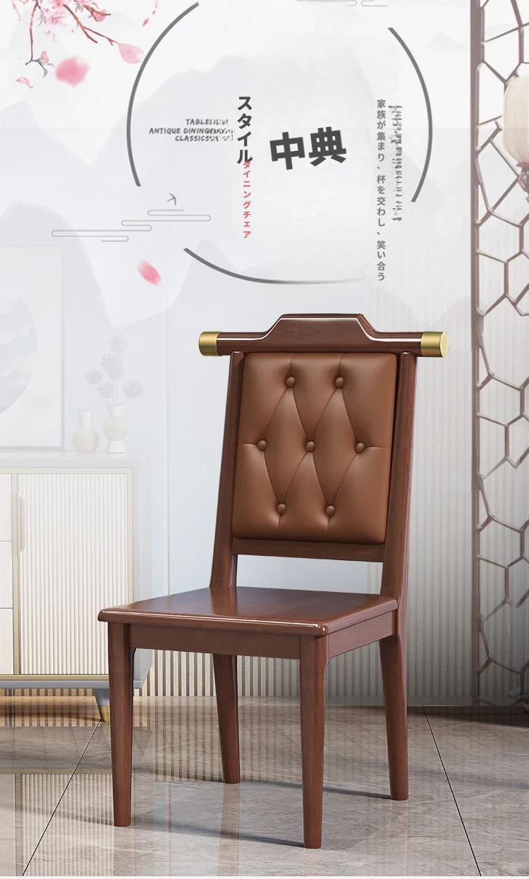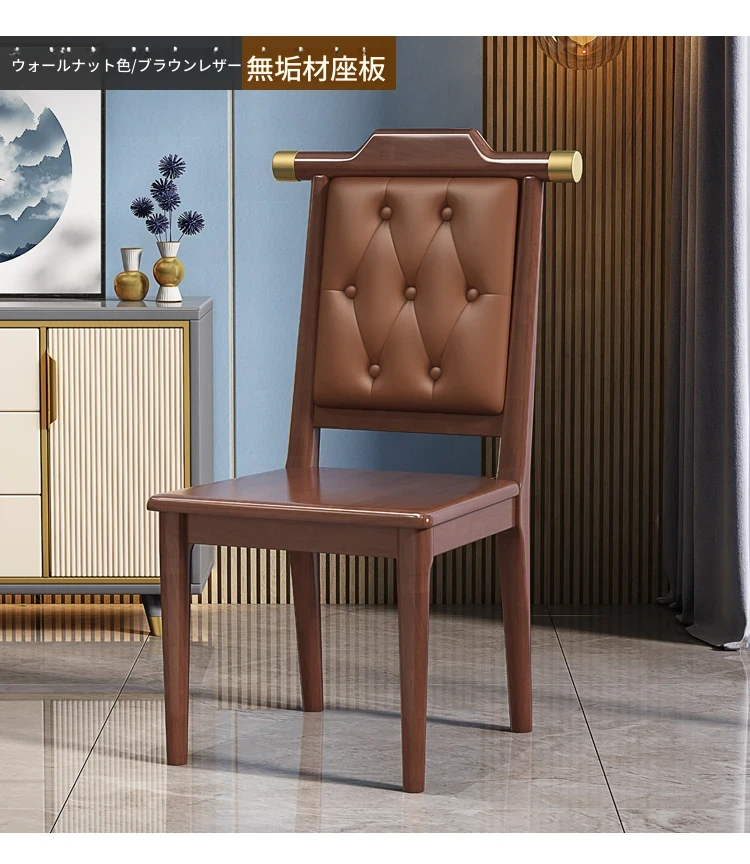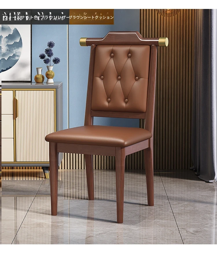 くるみ色のブラウンレザーソフトシート新中式ダイニングチェア