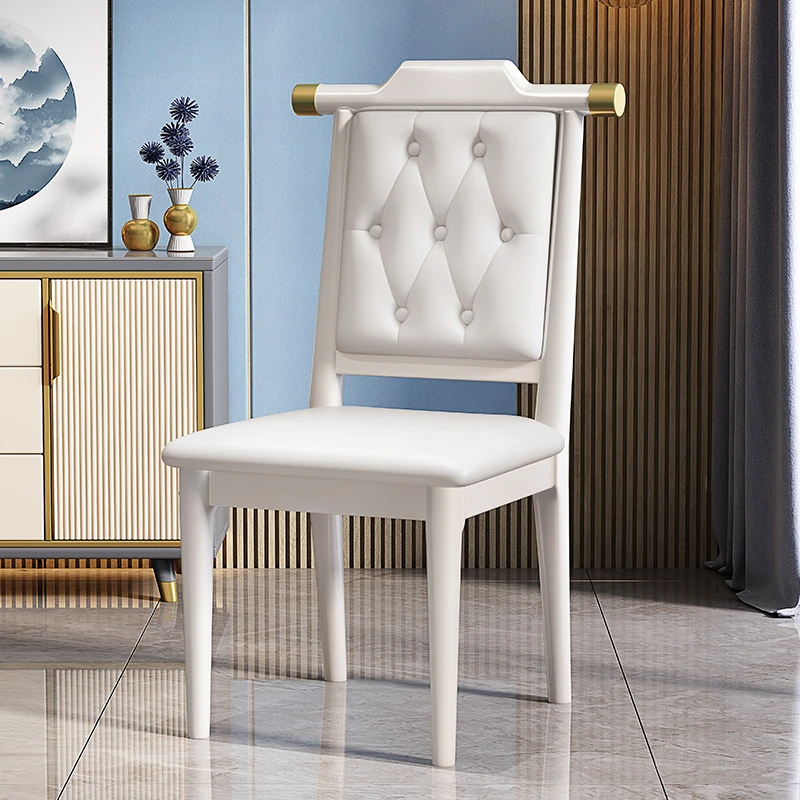 ホワイト色のホワイトレザー硬い座面新中式ダイニングチェア