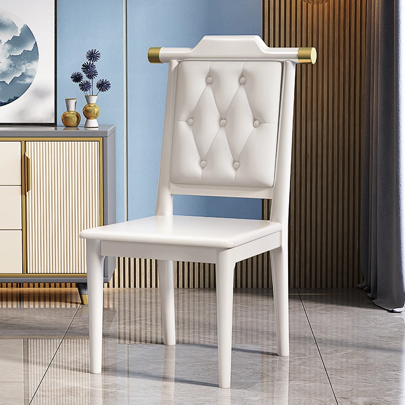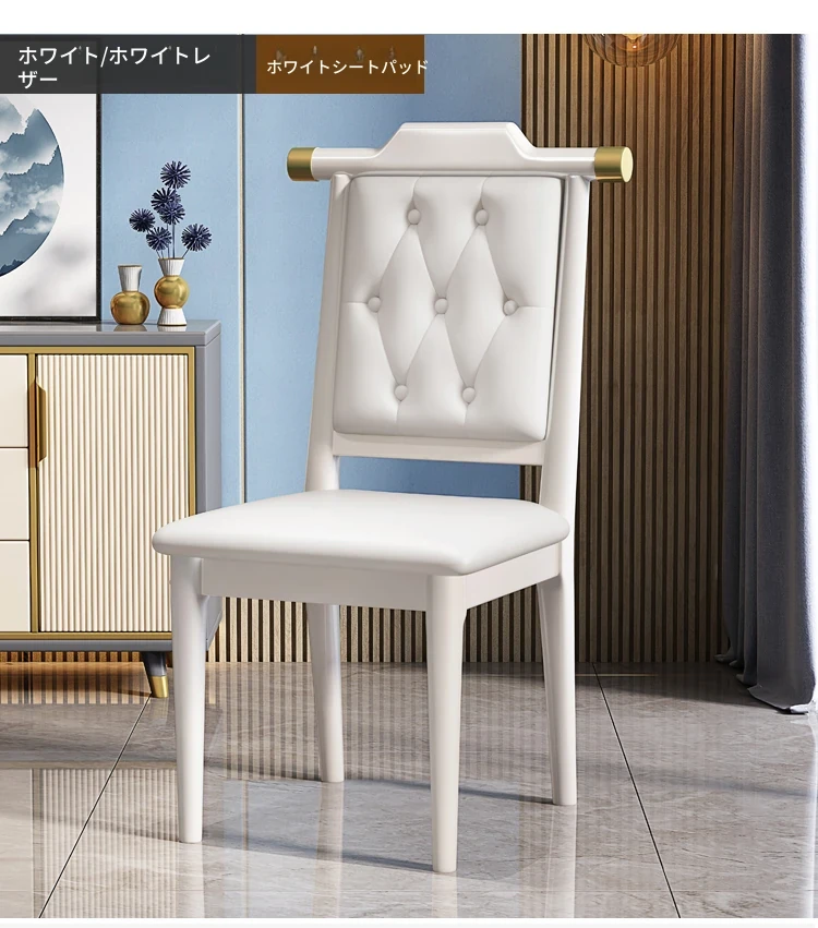 ホワイト色のホワイトレザーソフトシート新中式ダイニングチェア