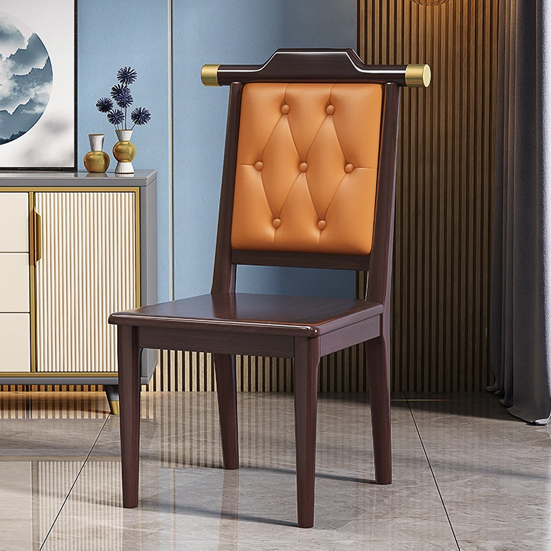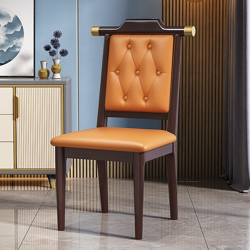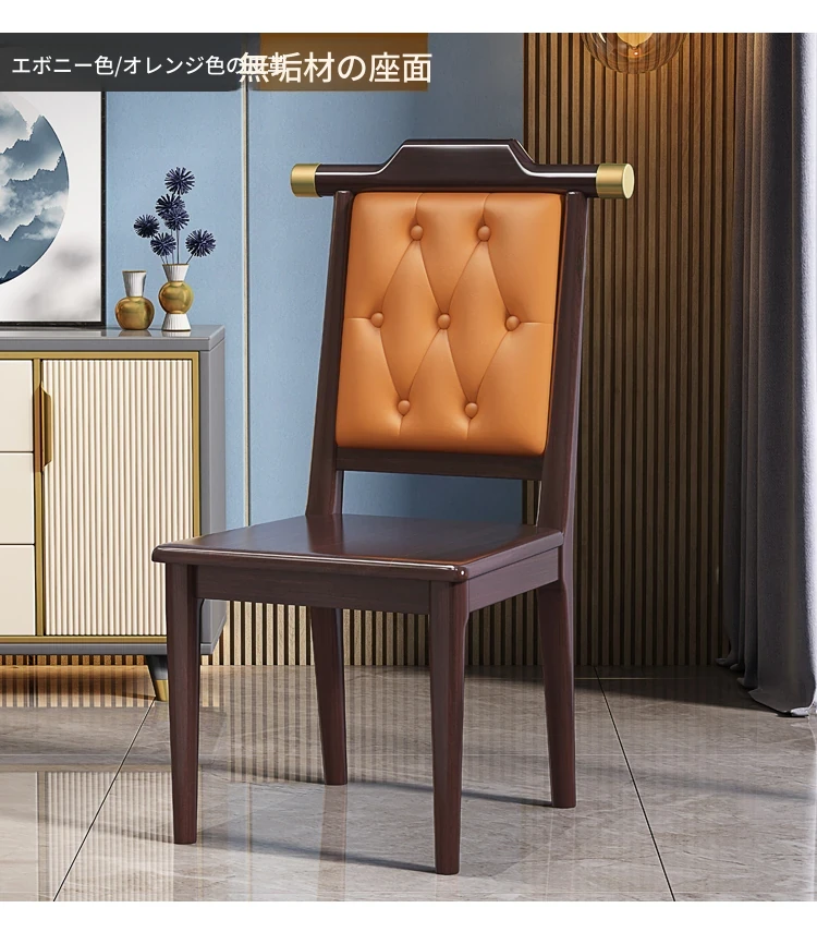 紫檀色のオレンジレザーソフトシート新中式ダイニングチェア