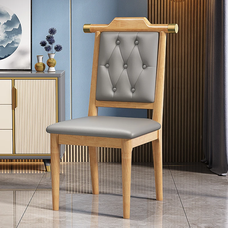 ナチュラルウッド色のグレー レザーソフトシート新中式ダイニングチェア