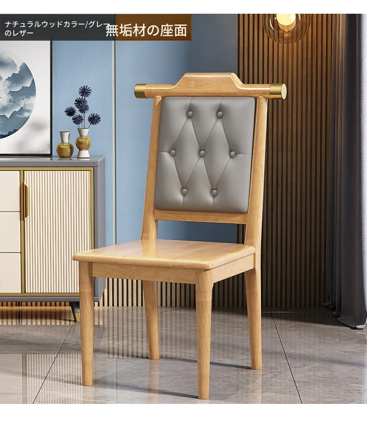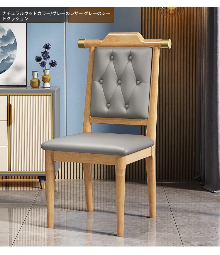 ナチュラルウッド色のグレー レザー硬い座面新中式ダイニングチェア