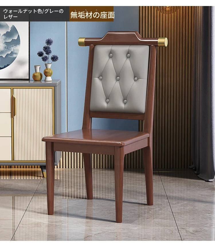 くるみ色のグレー レザー硬い座面新中式ダイニングチェア