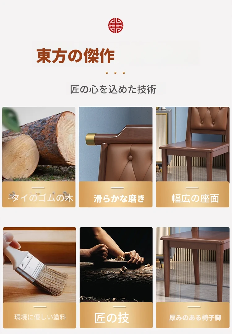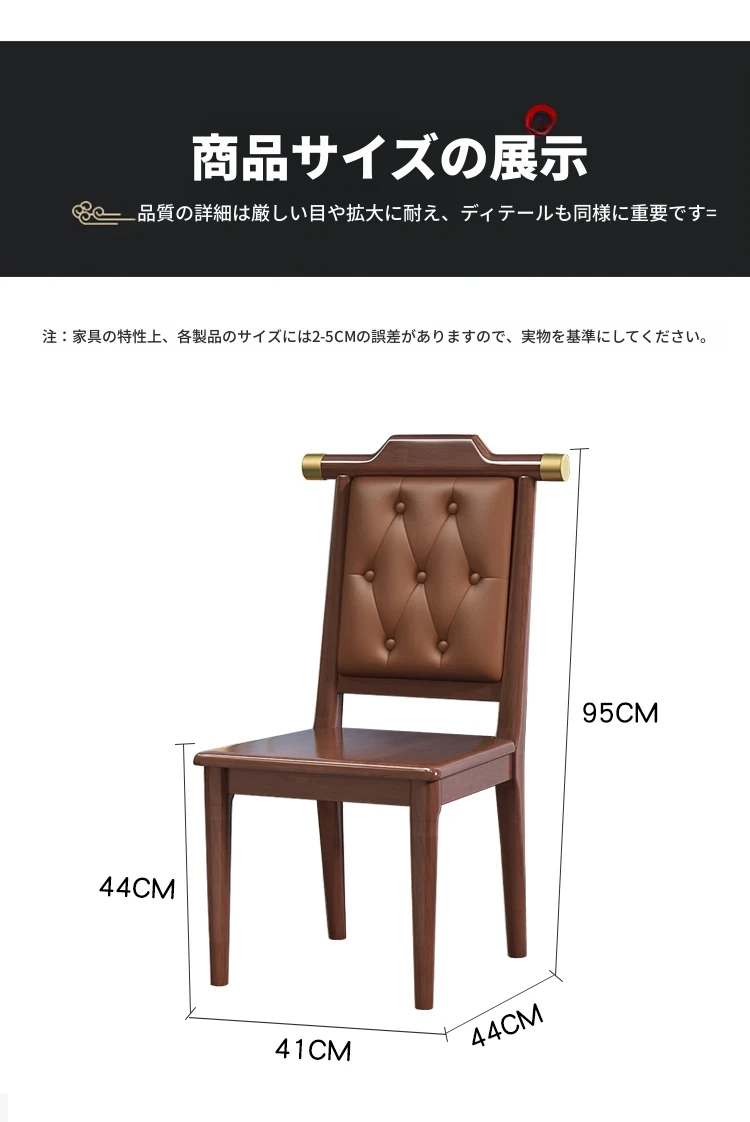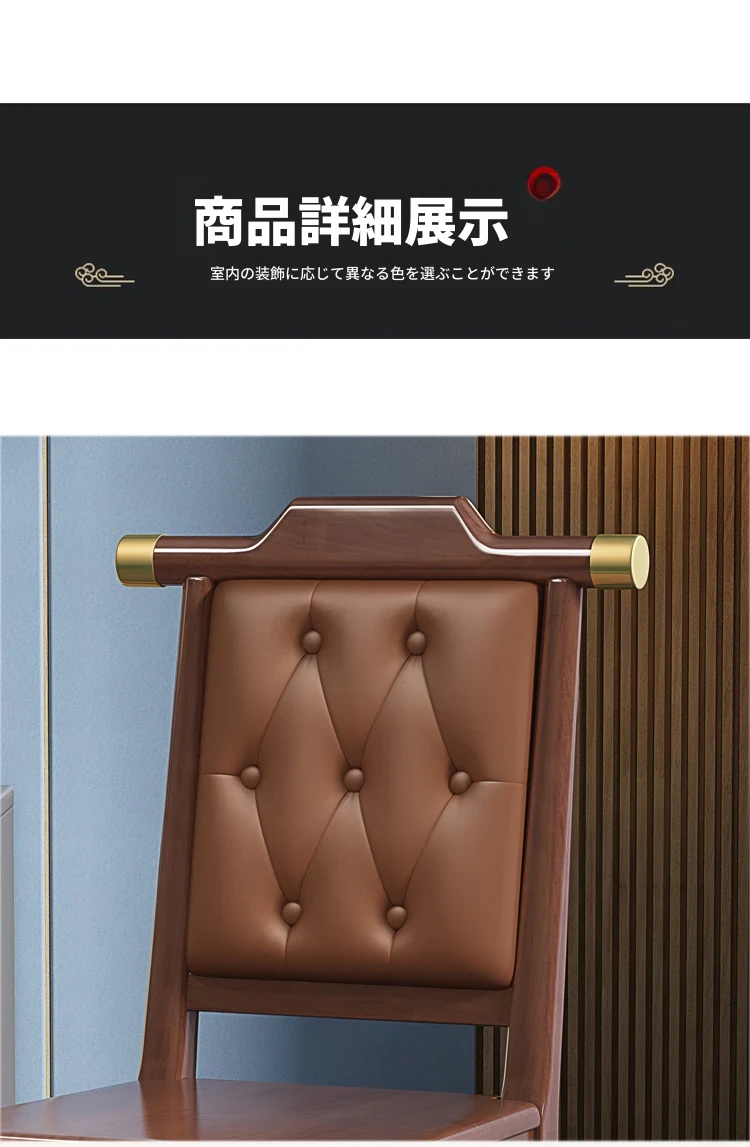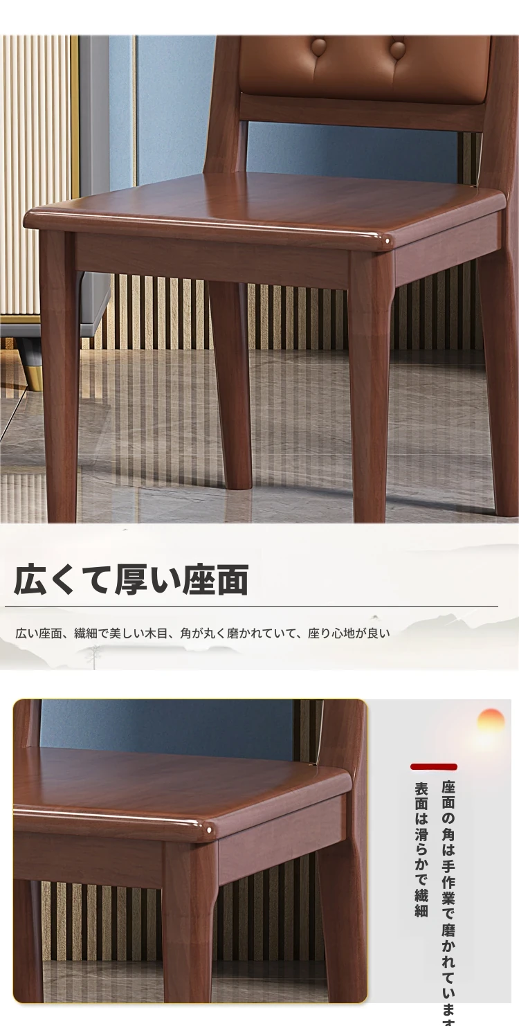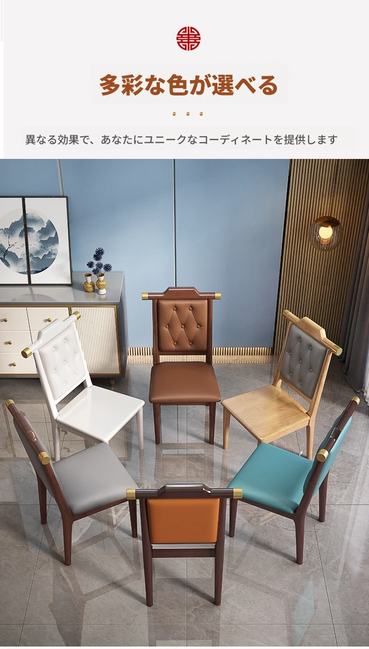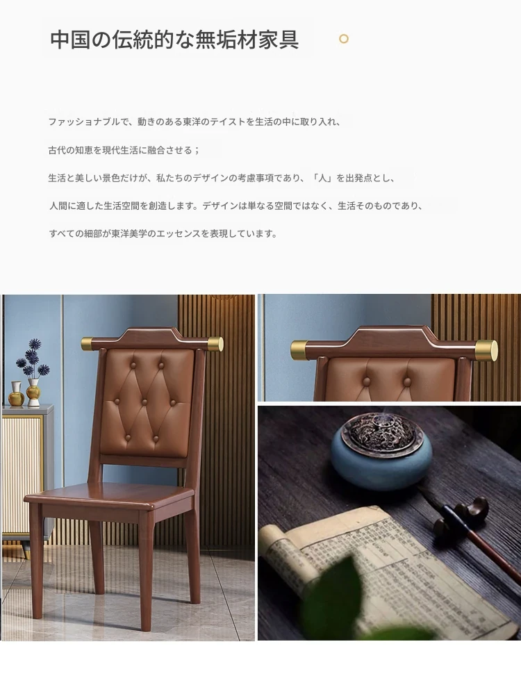 新中式デザインの無垢材ダイニングチェア|リラックスできる背もたれ付き|家庭やレストランに最適|食事を楽しむためのスタイリッシュな木製チェア
