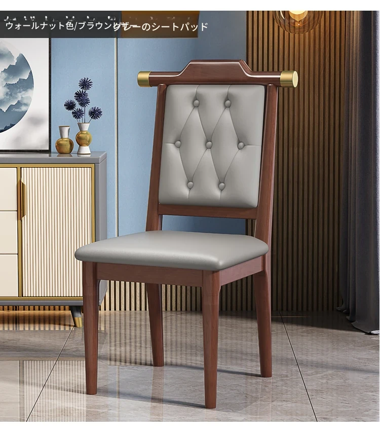 くるみ色のグレー レザーソフトシート新中式ダイニングチェア