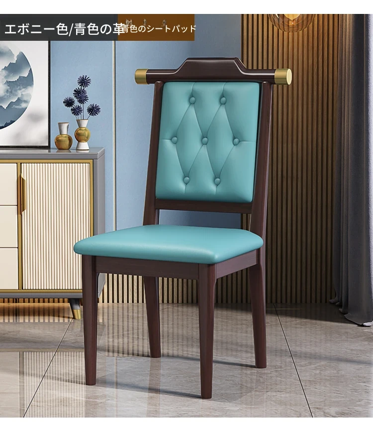 紫檀色のブルーレザー硬い座面新中式ダイニングチェア