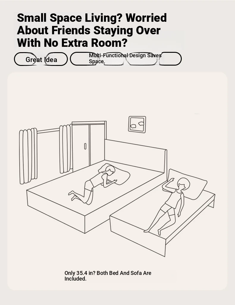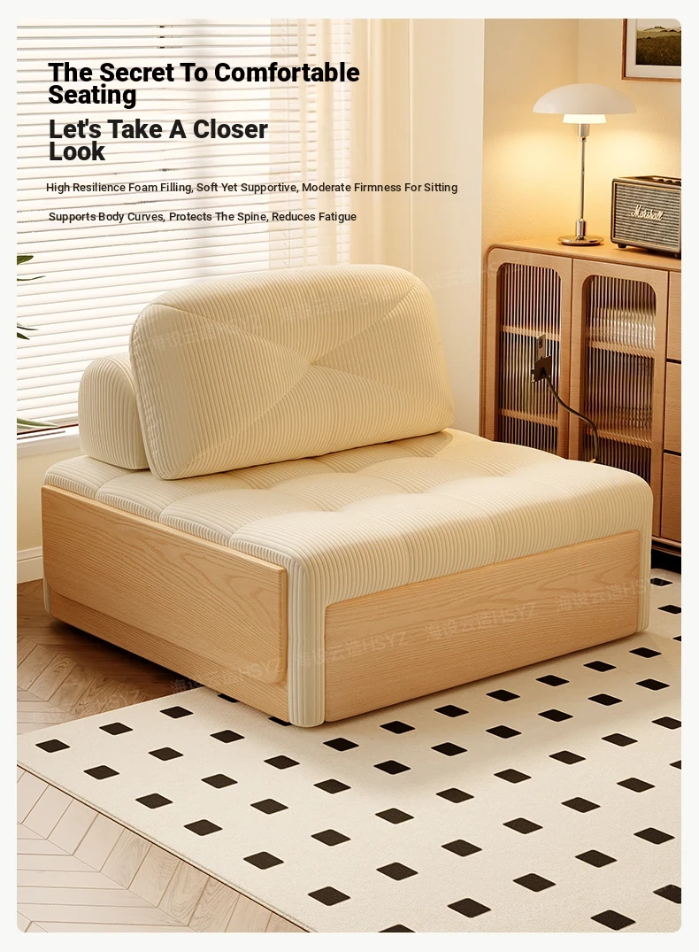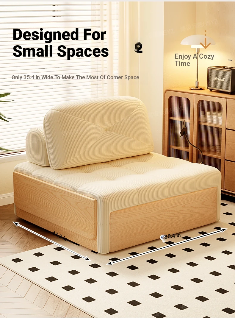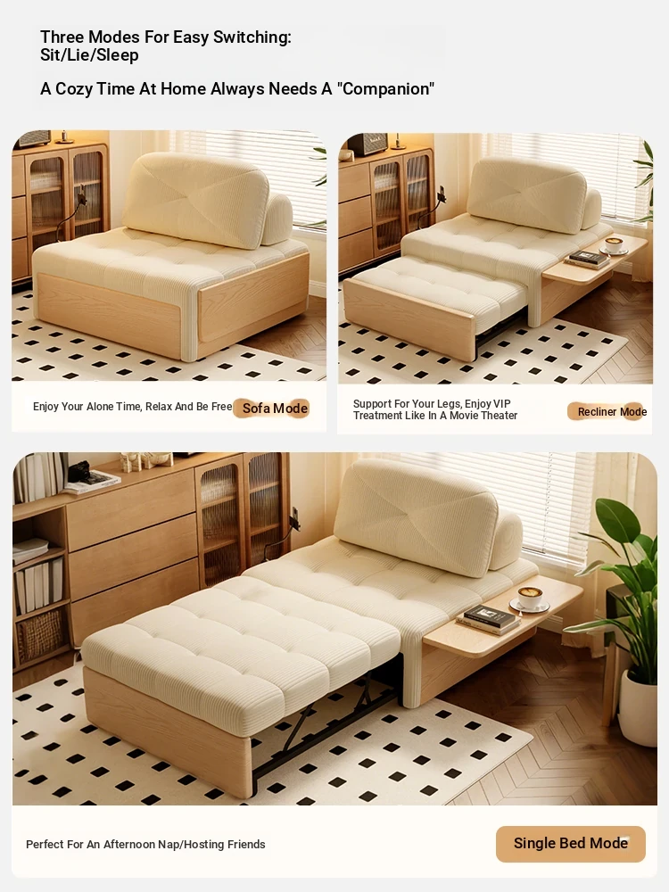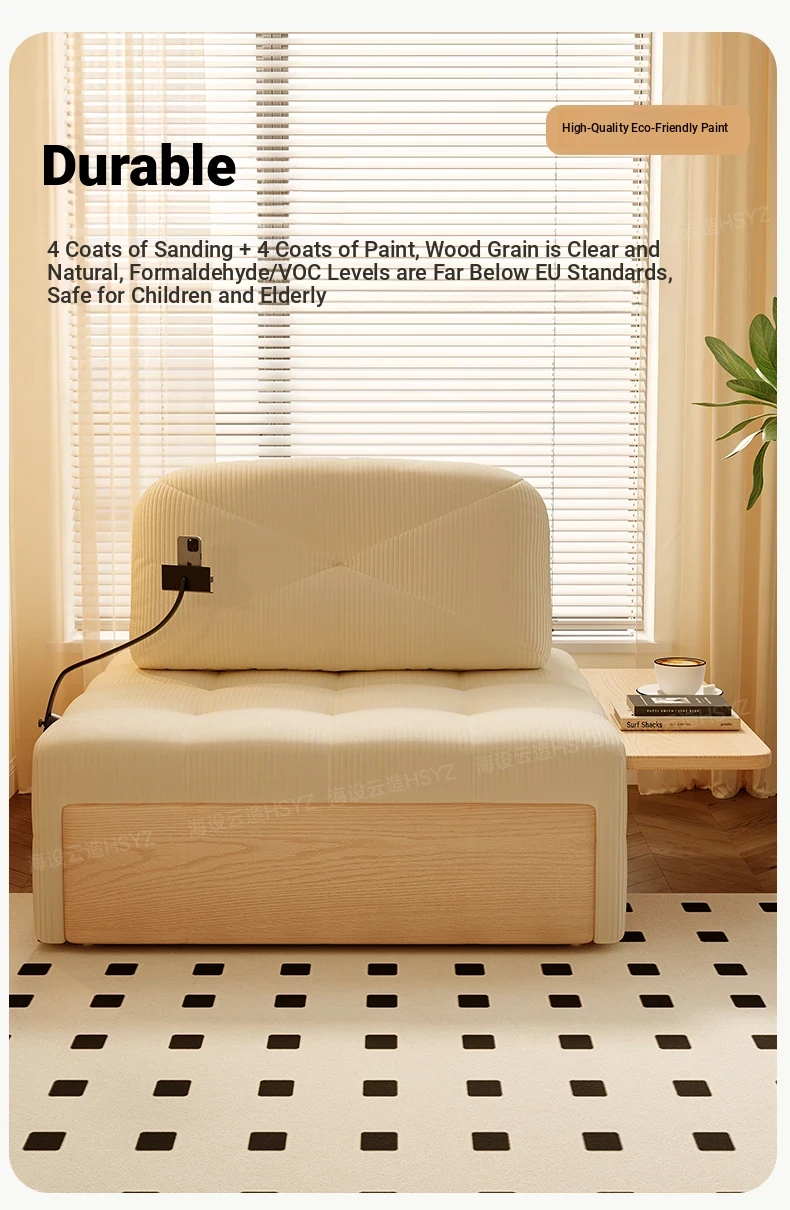 Versatile Folding Sofa Bed for Small Spaces - Stylish, Dual-Purpose Design Perfect for Balconies and Home Offices, Crafted from Solid Wood for Comfort and Durability.