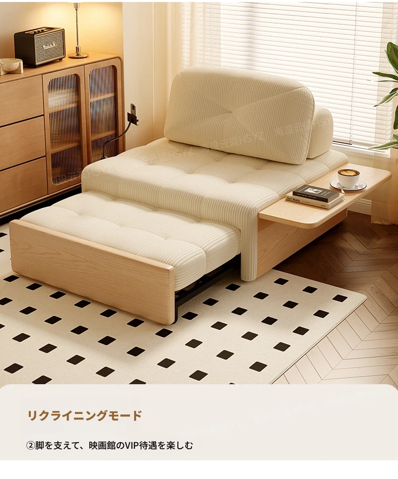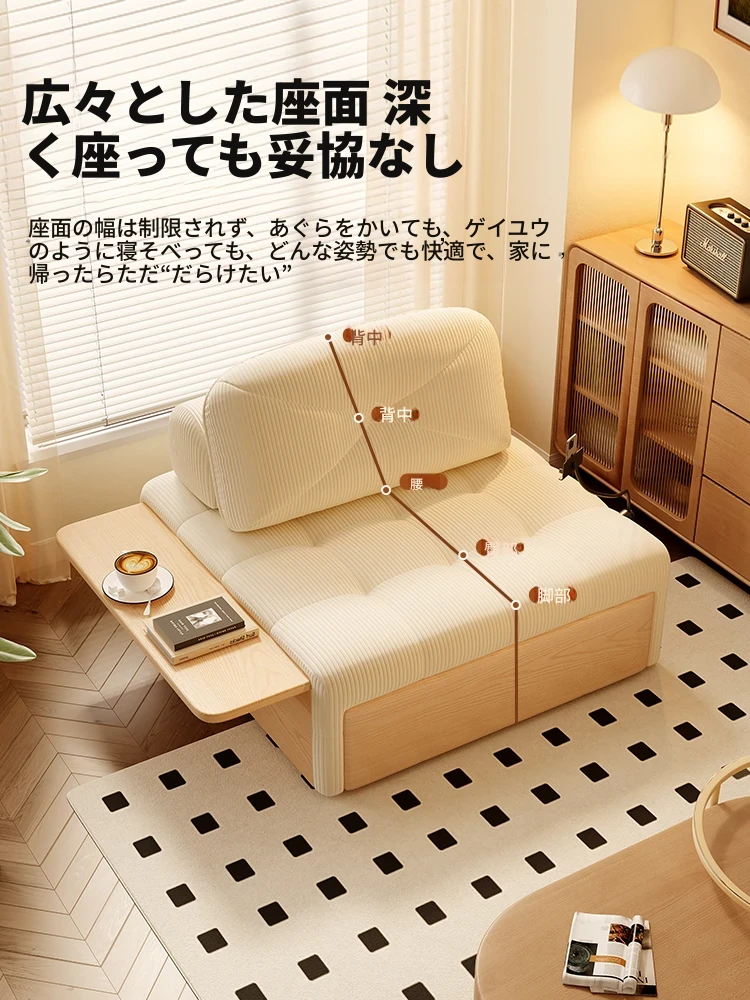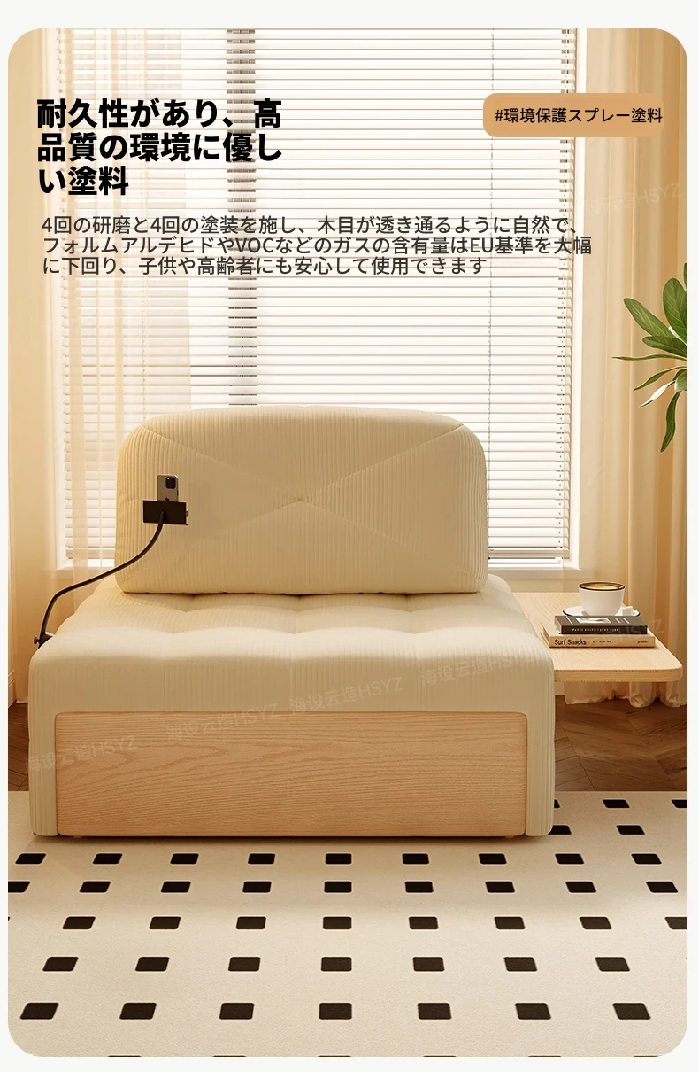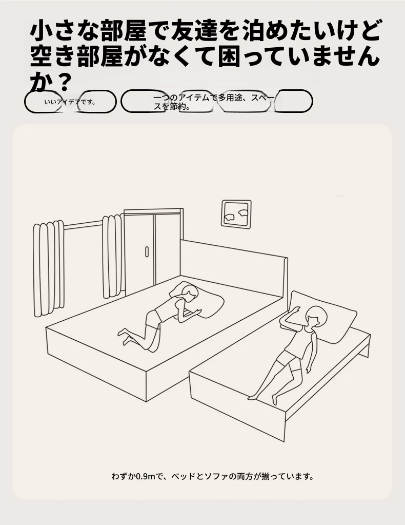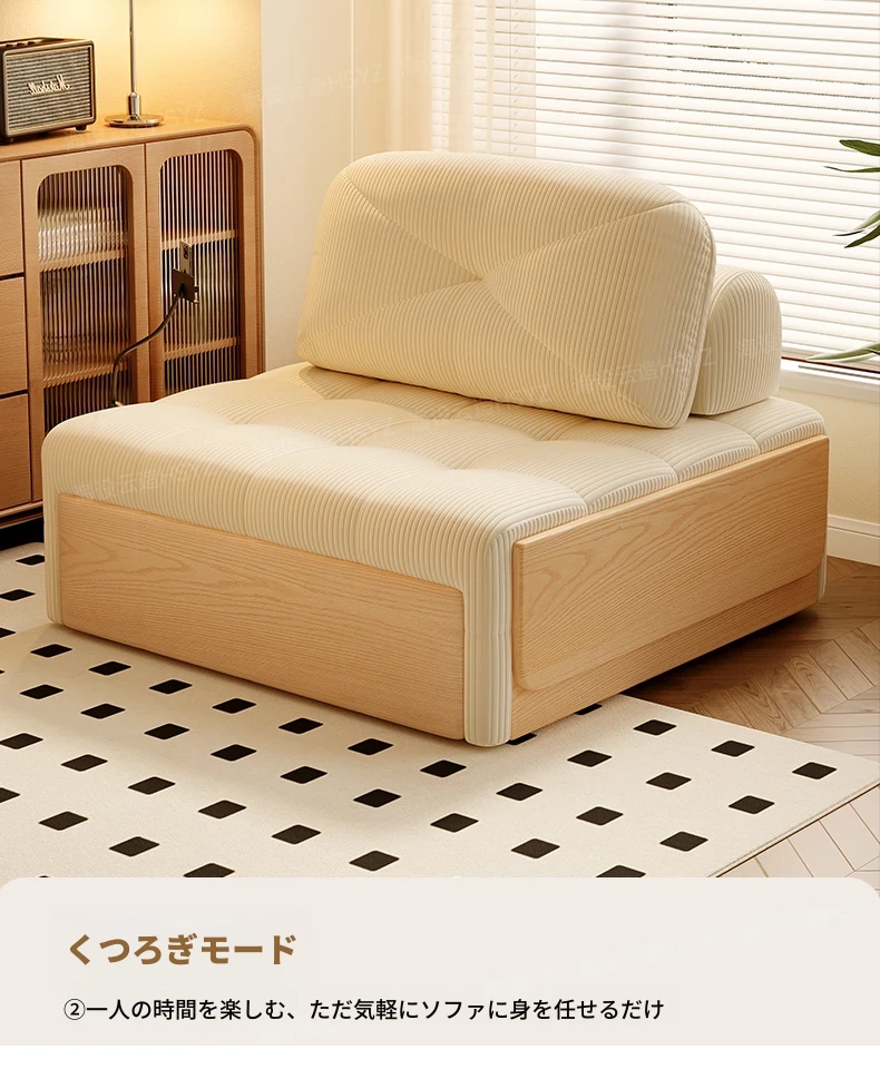国産折りたたみソファベッド!シングル・ダブル両用の新型マルチ機能ソファ。バルコニーや書斎に最適なコンパクト設計、天然木使用で高品質!小さなお部屋でも広々使える!