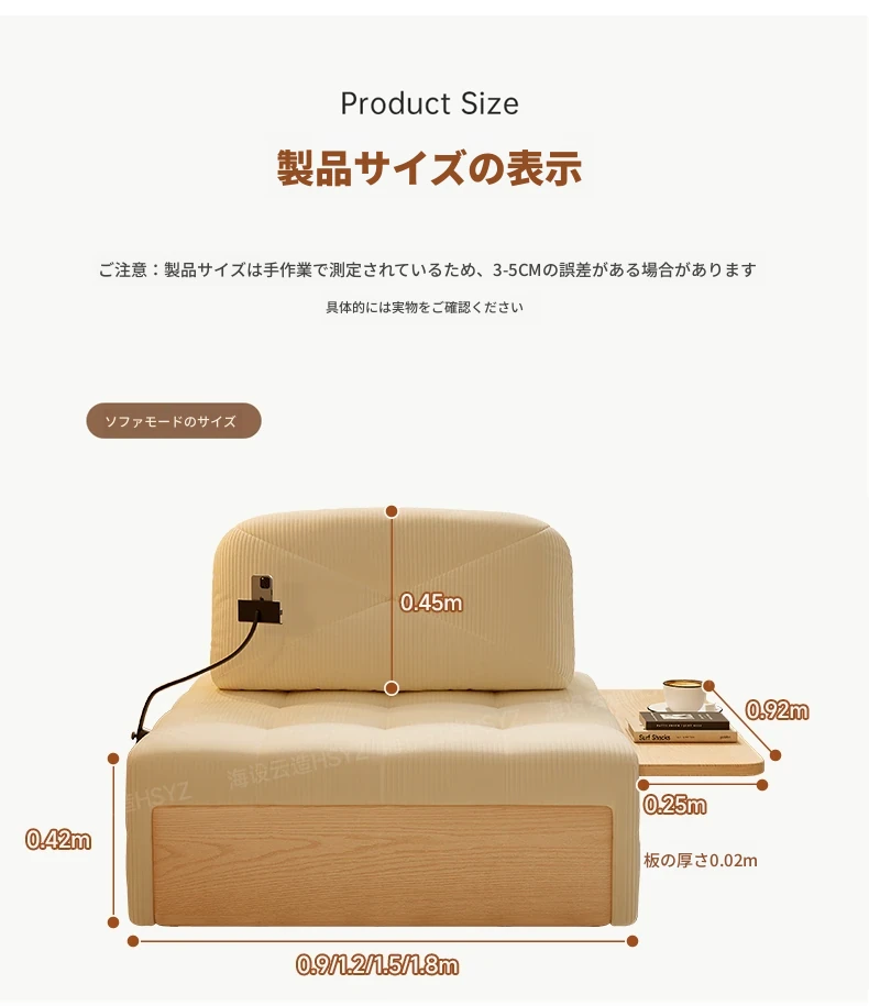 【7星抗皺耐磨・ソフトで通気性のあるテディファー】-1.2メートルソファベッド 同価格のコーデュロイ生地