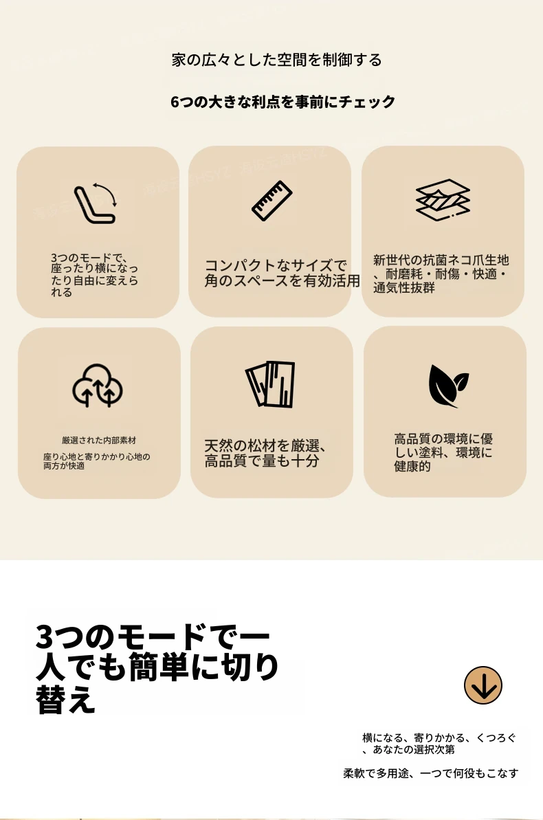 【5A防水抗菌・八防絨感猫抓布】-1.8メートルソファベッド 同価格のコットンリネン生地