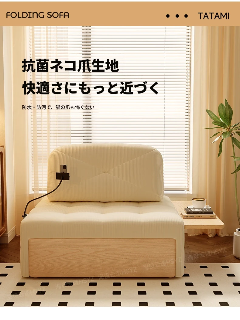 【5A防水抗菌・八防絨感猫抓布】-0.9メートルソファベッド 同価格のコットンリネン生地