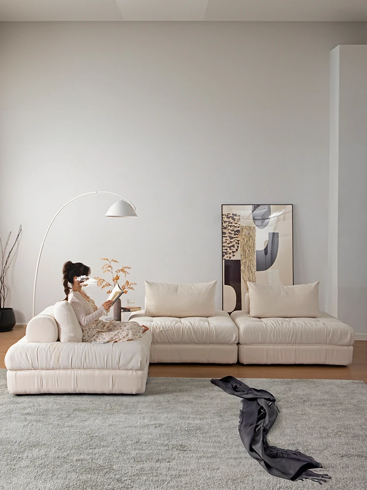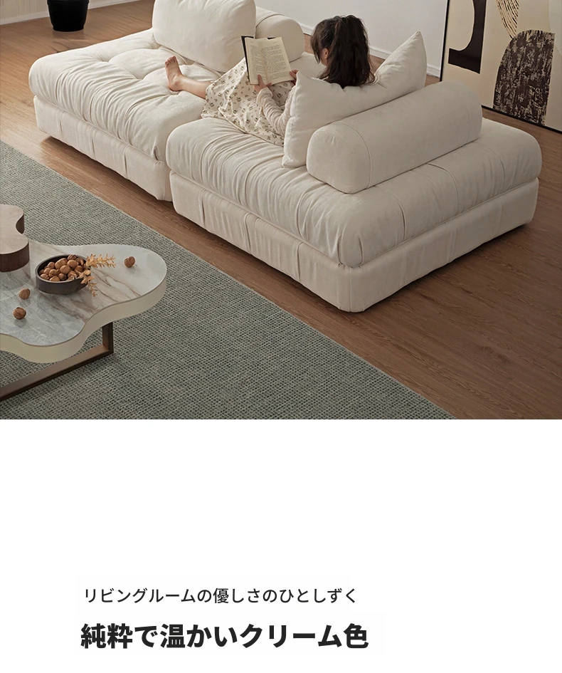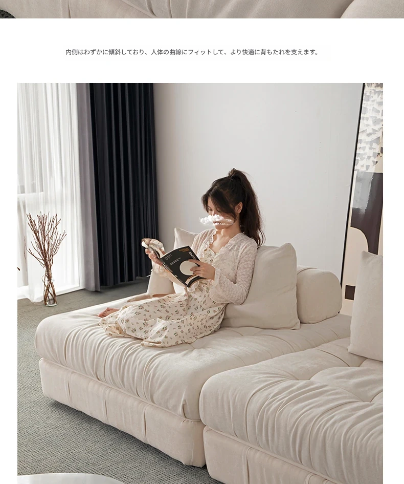 言楽居 フレンチクリーム風デザイン ソファ モダンミニマリスト 北欧スタイルの侘び寂び 布製 モジュラー 小型リビングに最適なスタイリッシュソファ