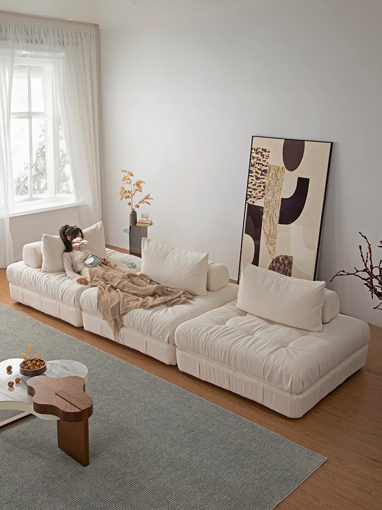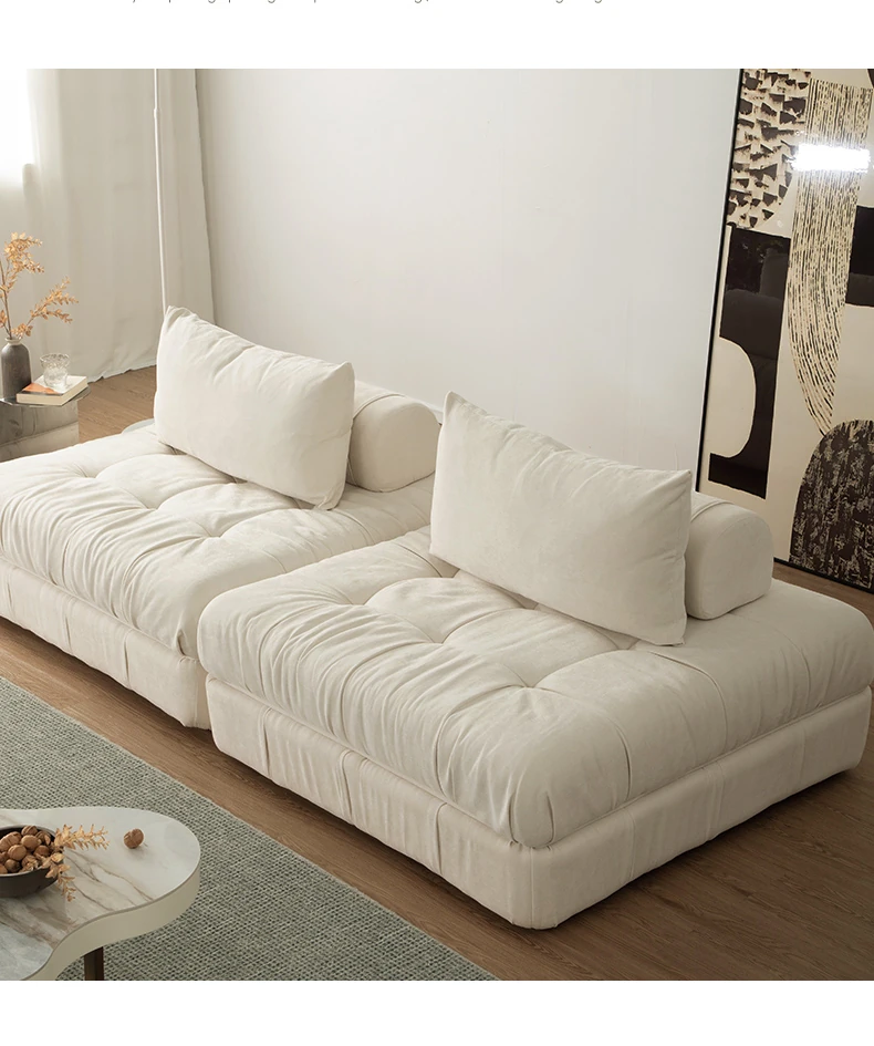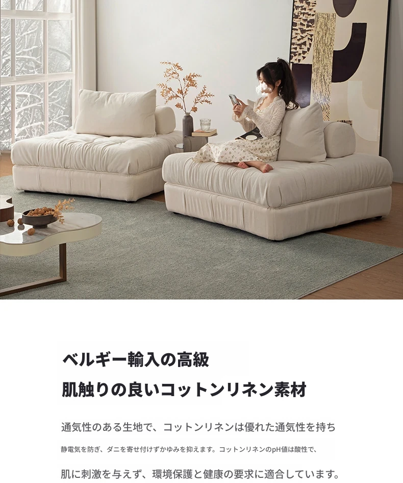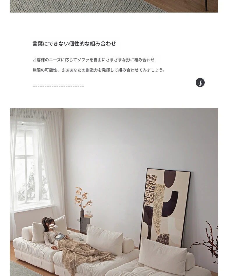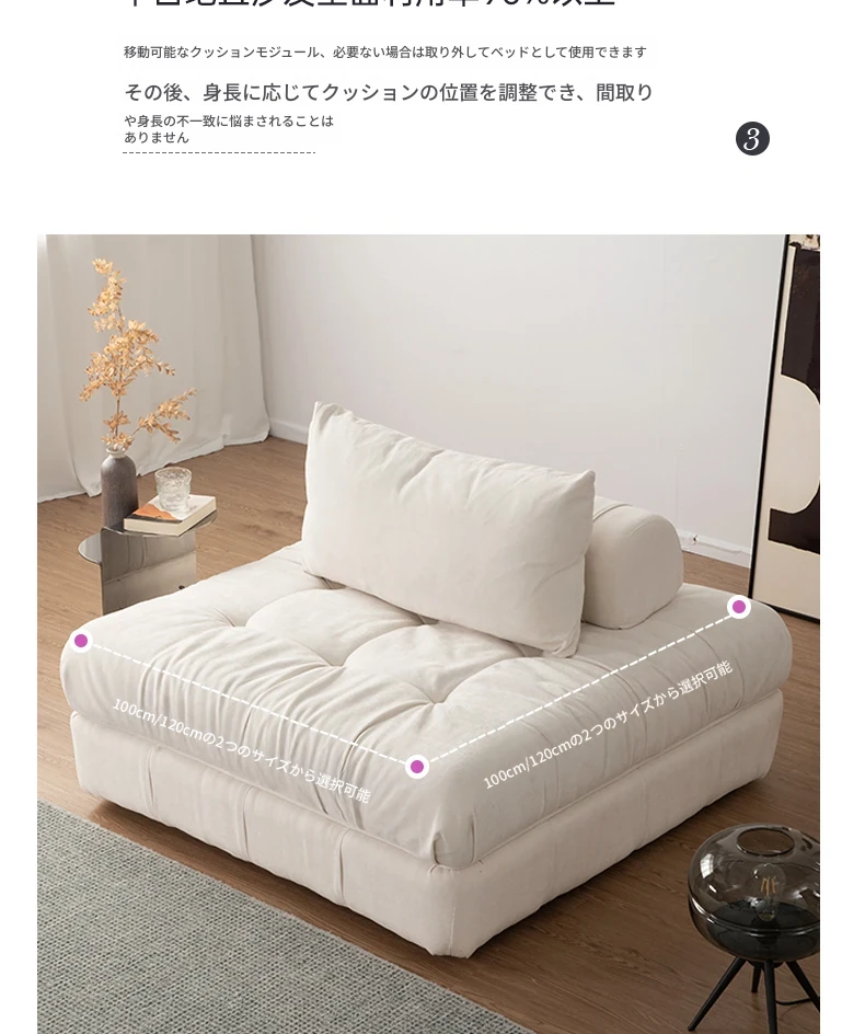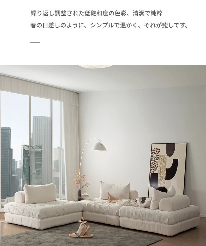 侘寂風の北欧スタイル!コンパクトな中古風モジュラー組み合わせソファ。アームレスデザインで、1人掛けと3人掛けを選べる、柔らかなフリース生地が心地よい。おしゃれで機能的な空間を演出します!