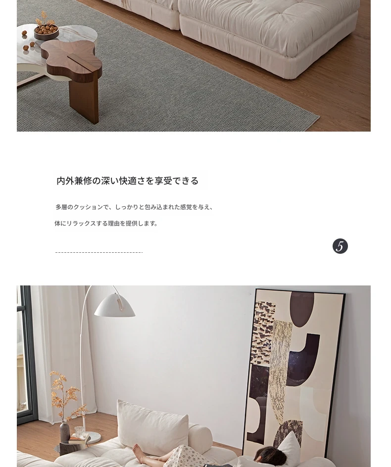 新作フレンチクリーム風花びらデザインのリビングルーム用ユニークコーナーソファ2025年版!トレンド感満載の布製、コンパクトな小型リビングにも最適なインテリアアイテムです。おしゃれな空間を演出しましょう!