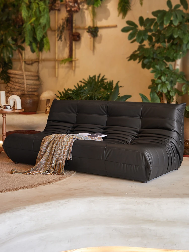 高級感溢れるレザー製毛虫ソファ!おしゃれな小型リビングにぴったりの人気アイテム。快適なダブルサイズで、リラックスしたい時や作業にも最適なブラックのラグジュアリーソファ。あなたの空間を格上げします!