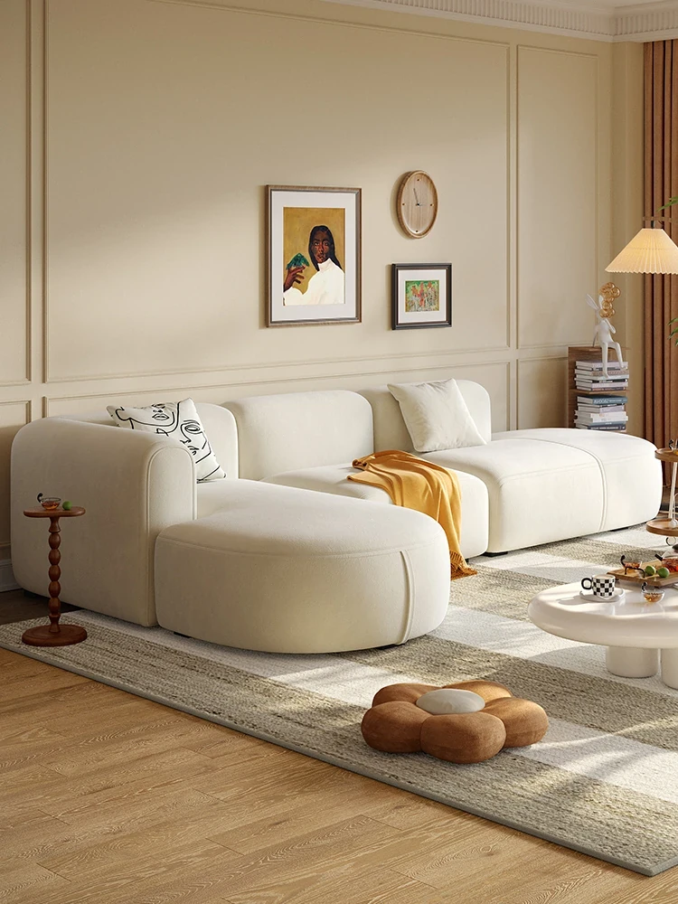 ラウンドセーリング布製ソファー、リビングルームに最適な雲のようなホワイトクリーム風。猫の爪を防ぎ、シンプルでスタイリッシュなデザイン。狭いスペースにもぴったりの直排豆腐ブロック型!
