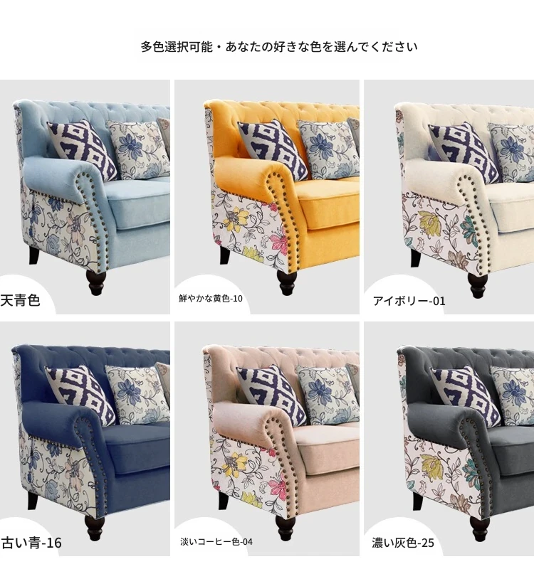アメリカンカントリースタイルの布製コンパクト3人掛けソファ - モダンな田園風や地中海スタイルにぴったり!小さなリビングや寝室に最適なシンプルでおしゃれなデザイン。快適な座り心地で、あなたの空間を魅力的に演出します。
