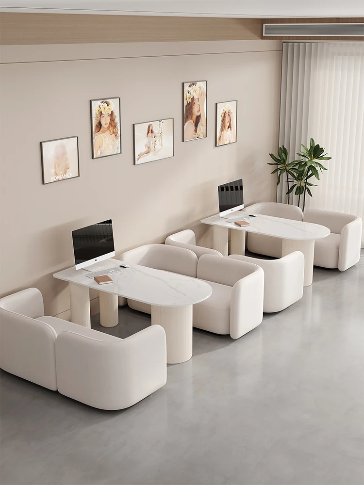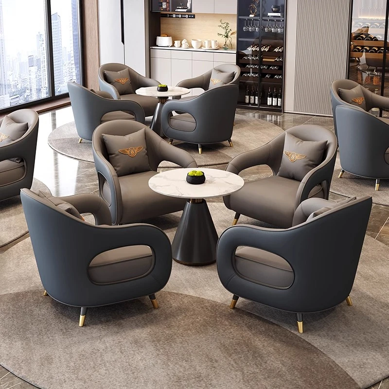 高級感あふれる円形岩板談話テーブル&チェアセット - ビジネスミーティングや展示会に最適な洗練されたデザイン、クリエイティブなレストランにもぴったり!