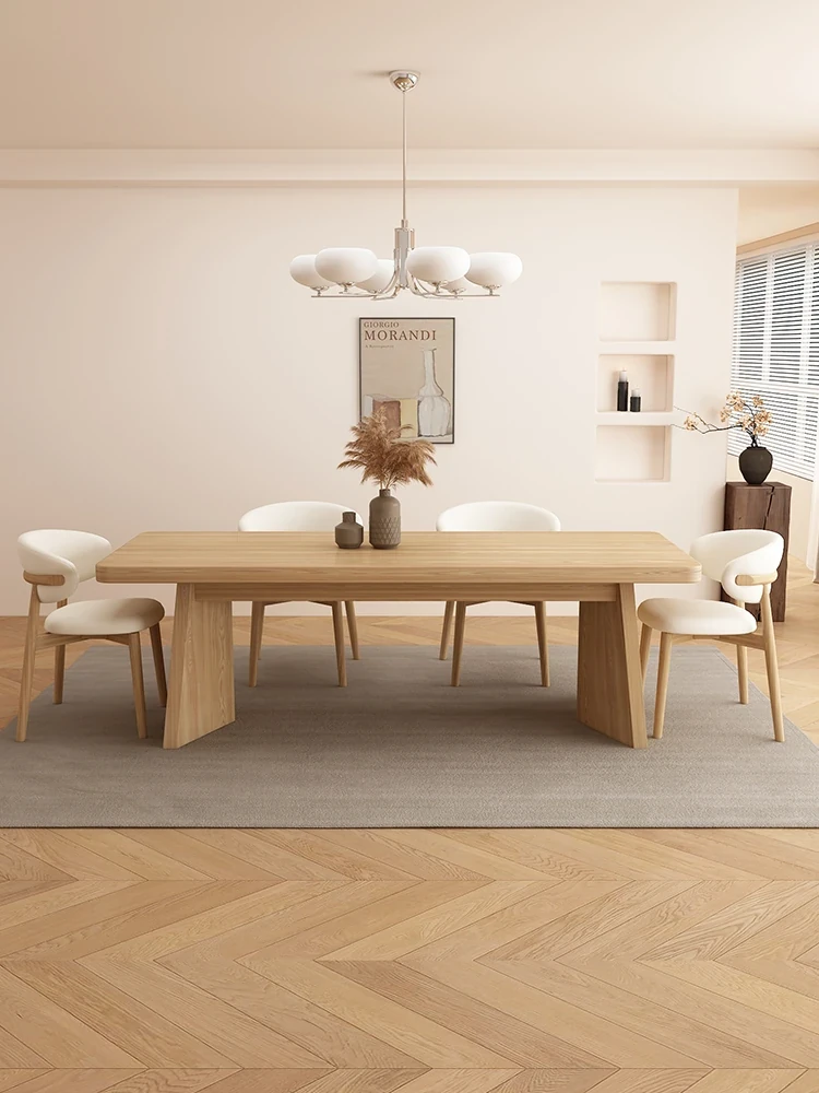 モダンでシンプルな実木製の岩板ダイニングテーブル - フレンチスタイルのナチュラルクリームカラー、長方形の家用テーブル。小さな部屋にも最適なアイランドテーブルで、食卓を華やかに演出します!