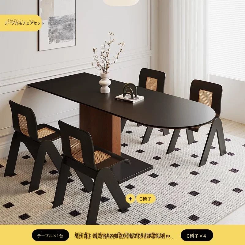 小さな家にぴったり!モダンでシンプルなデザインの実木製ロックプレートダイニングテーブル。新中式スタイルの長方形で、黒とクリームの絶妙な組み合わせ。高級感溢れるダイニング体験をお楽しみください!
