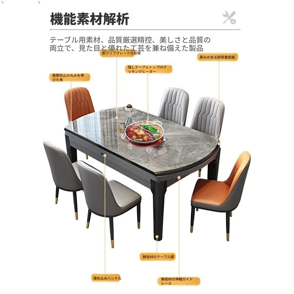 【香港送料無料】洗練されたデザインの伸縮可能な岩板ダイニングテーブル&チェアセット!小スペースにぴったりのモダンシンプルな方形・円形両用。食卓で特別なひとときを演出します!