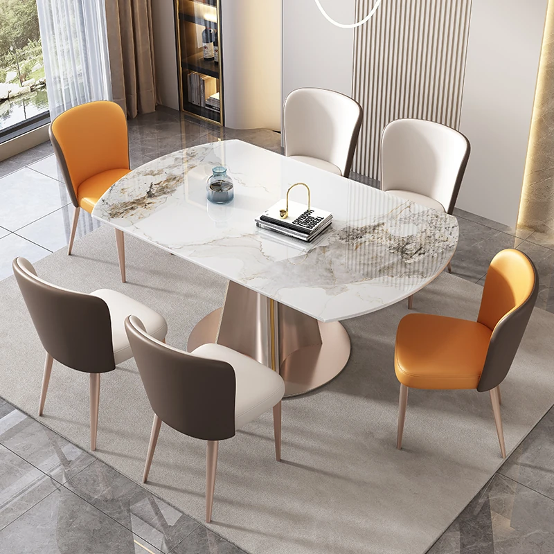 北欧風のラグジュアリー感漂う洽談テーブル|小型家屋に最適な長方形の岩板ダイニングテーブル|モダンでシンプルなデザイン|リビングや商業空間にもぴったり!