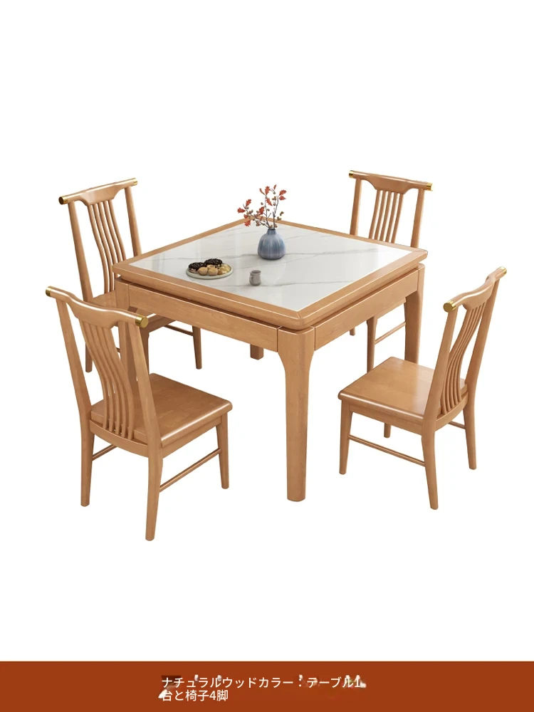 新中式スタイルの岩板ダイニングテーブル&チェアセット|実木製の正方形テーブル|八仙テーブルで、家族や友人との楽しい食事やゲームタイムを演出!快適でスタイリッシュなダイニング空間を実現!