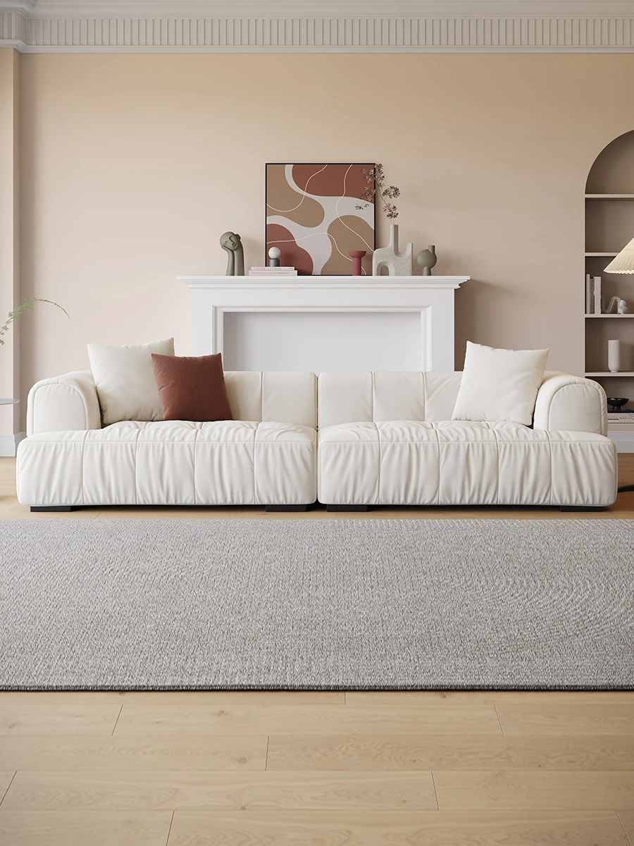 ラグジュアリーなデザイン!2025年新作、猫の爪にも強いクラウドコットン素材のミニマルモダンソファ。小さなリビングに最適なスタイリッシュな直線型、心地よいクリーム風の触感で、あなたの空間を優雅に演出します!