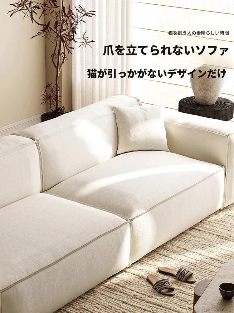 ラウンド・ブラウニー・セーリングソファ|コットンリネン製|小型リビングに最適|トーフブロックデザイン|新作のモダンシンプル|ホワイト|取り外し可能なカバーでお手入れ簡単!