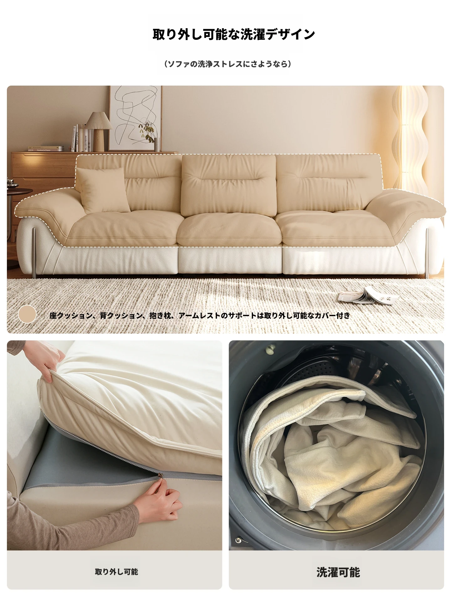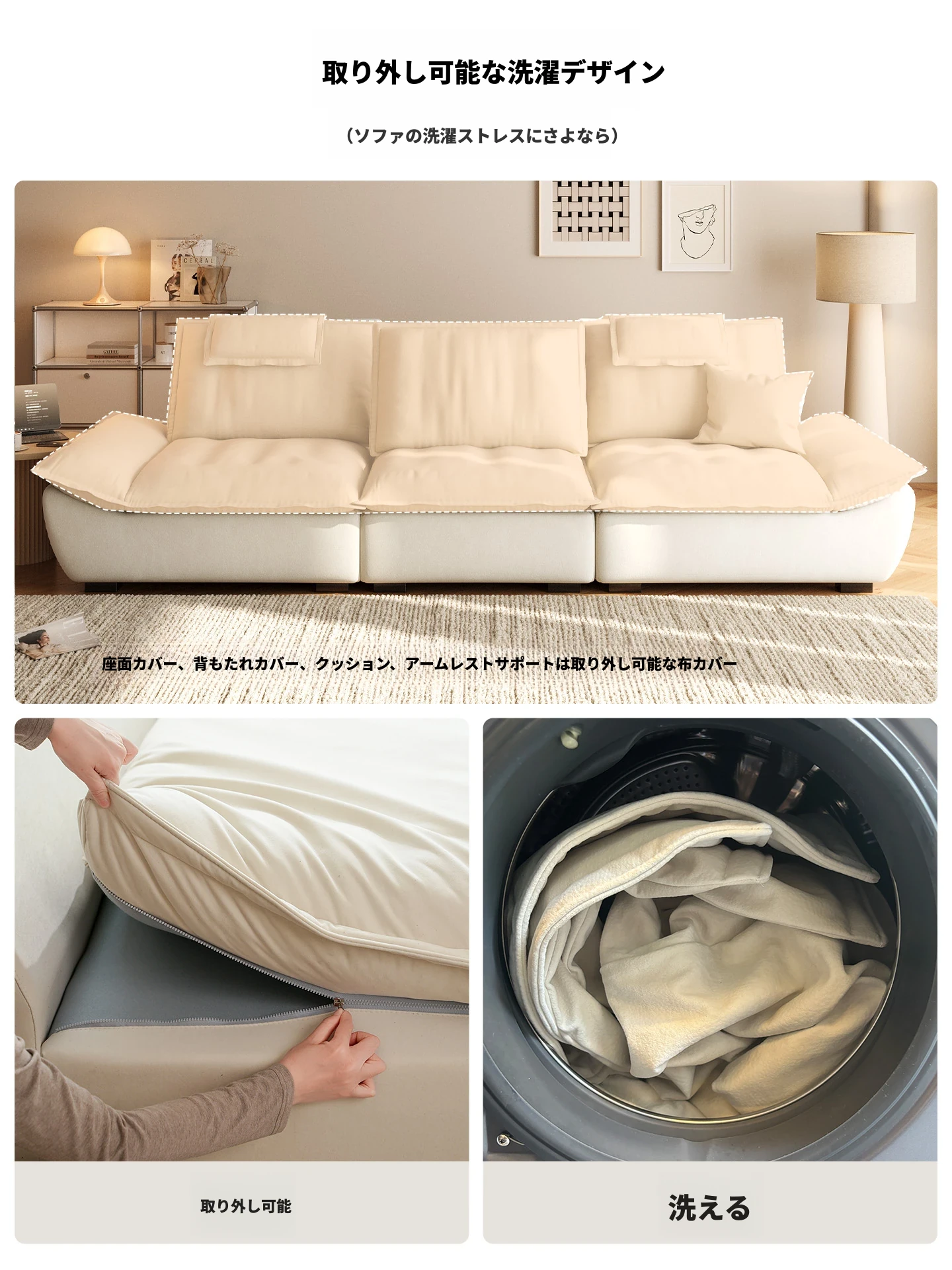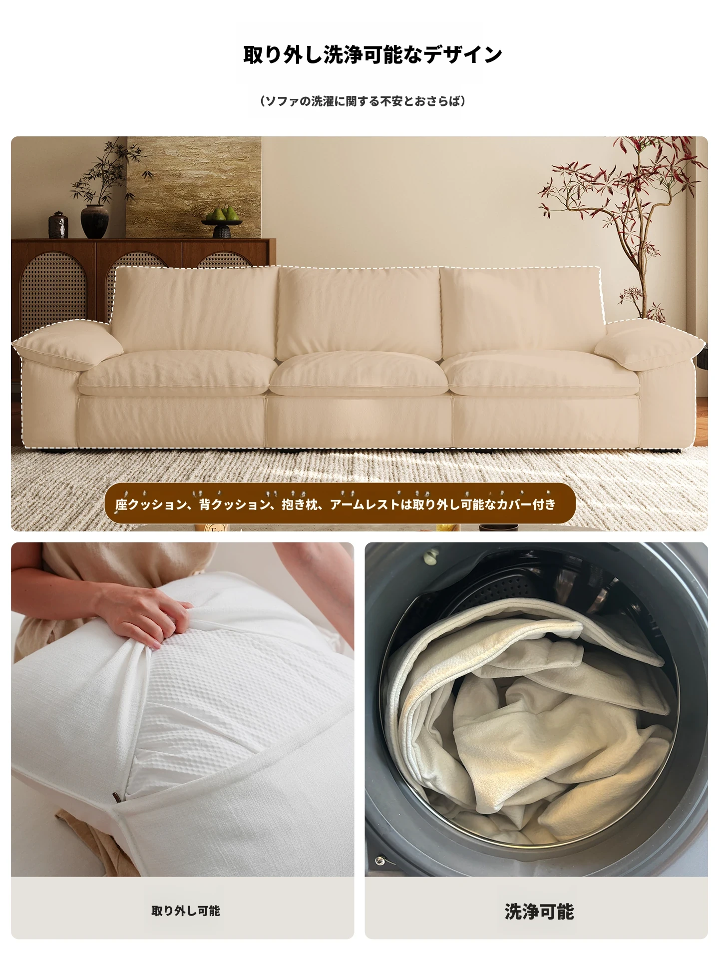 ラングドゥ帆船ソファー 新型小型3人用 フレンチクリームカラーのおしゃれで洗えるデザイン リビングにぴったり!