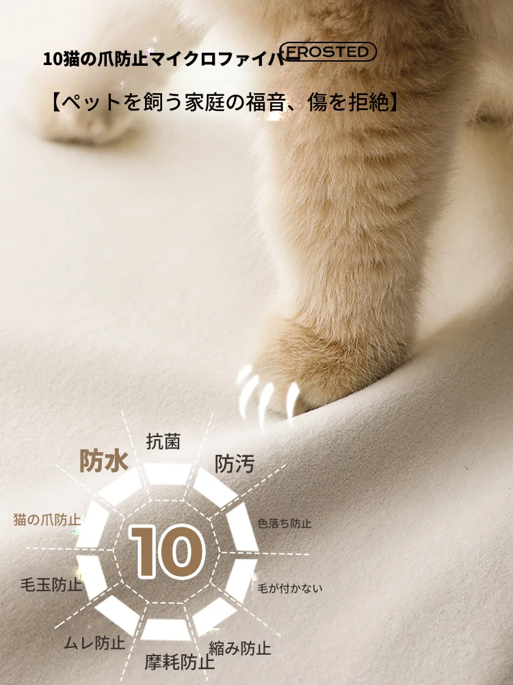 「ラウンド雲朵ソファカバー調整可能なモバイルバックレスト、コンパクトな三人掛け、クリーム風マットな猫の爪防止生地」