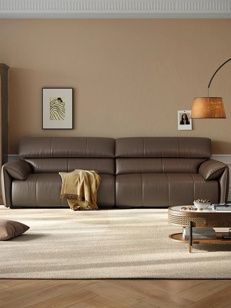 ラウンドホーム大象の耳デザイン アメリカンミニマリズム 本革ソファ 輸入された一級牛皮使用 大空間にも小空間にも最適なブラウンカラー リビングルームをスタイリッシュに彩る逸品!