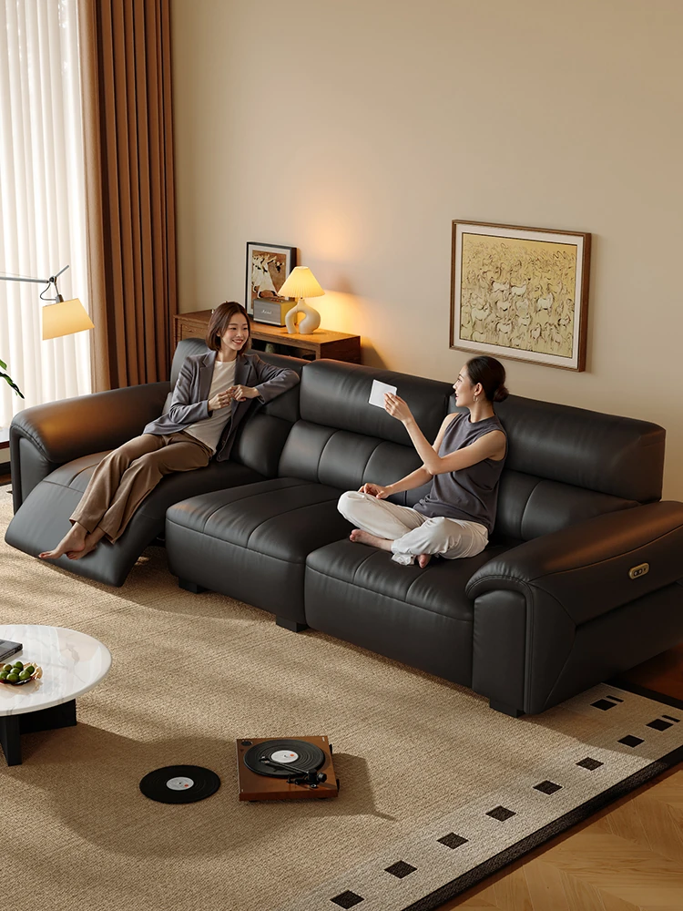 壁に寄らない黒糖電動本革ソファ、伸縮可能なレトロデザインのリビング用、調節機能付きの軽奢雲のようなソファベッド。快適さとスタイルを両立した理想の空間を実現!