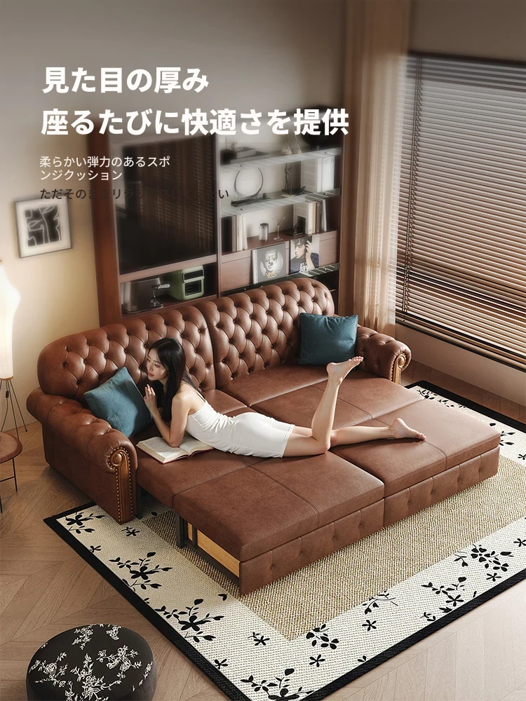 アルファビューティー 中古風 本革 ソファベッド 折りたたみ式 リビング・書斎用 アメリカンレトロ ノスタルジックなデザインのソファで、心地よい空間を演出!