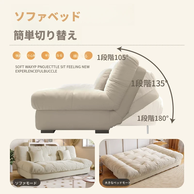 現代的ミニマリスト多機能ソファベッド - 寝るも座るも自由自在!家庭用リビングに最適な雲のような心地よさの怠け者ソファ、ファーストクラスのラウンジチェア!
