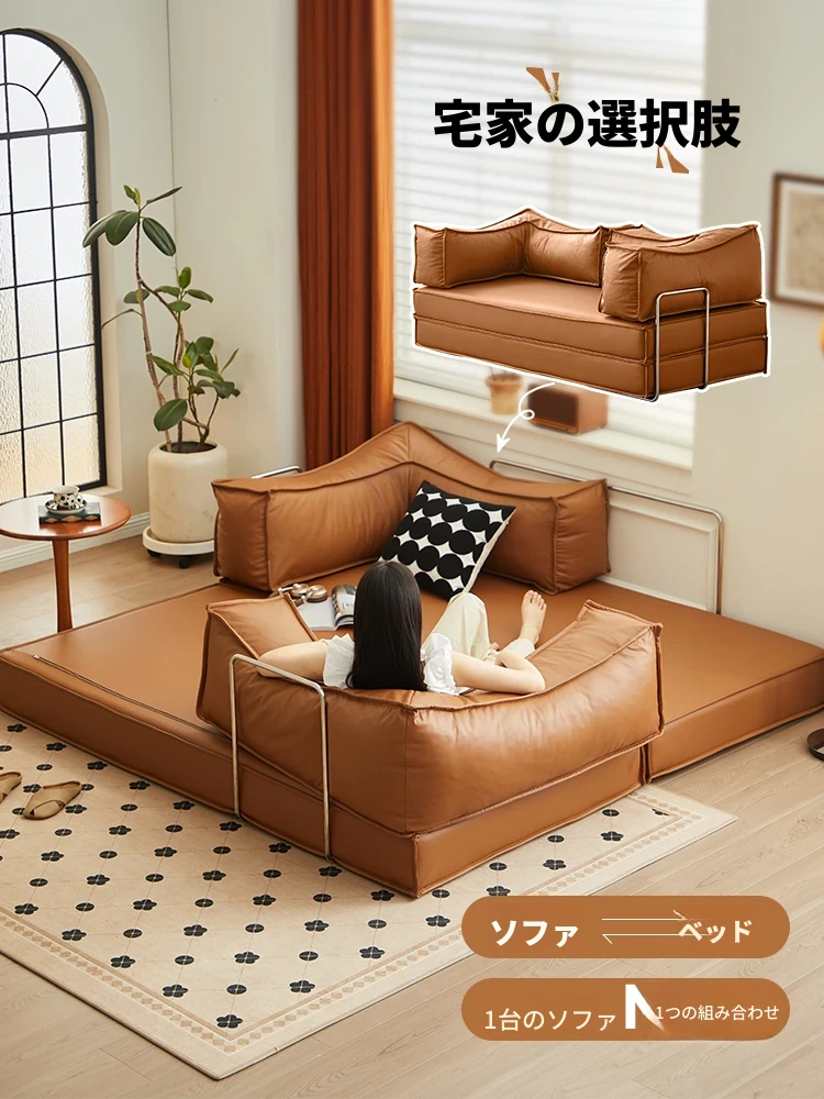 折りたたみ式多機能日本風レザーソファベッド - 小型スペースに最適!1.5m・1.8mの一人用・二人用、スタイリッシュでコンパクトなデザイン。快適な寝心地とおしゃれな空間を実現!